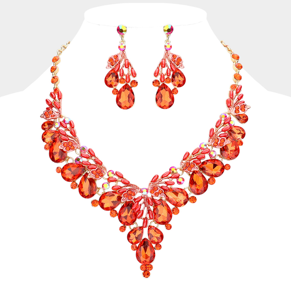 Teardrop Glass Crystal Pearl Vine Evening Necklace