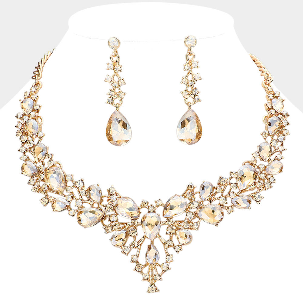 Teardrop Stone Cluster Embellished Dangle Evening Earrings