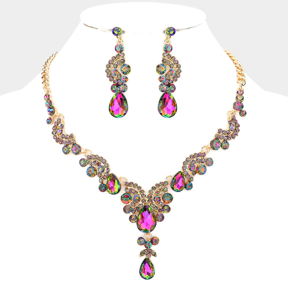 Round Teardrop Stone V Shaped Rhinestone Necklace