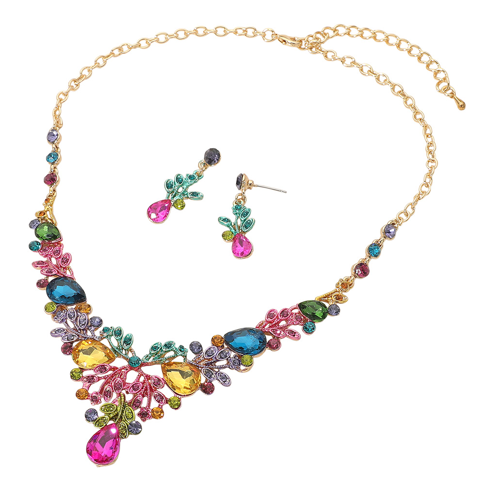 Teardrop Stone Cluster Embellished Branch Evening Necklace
