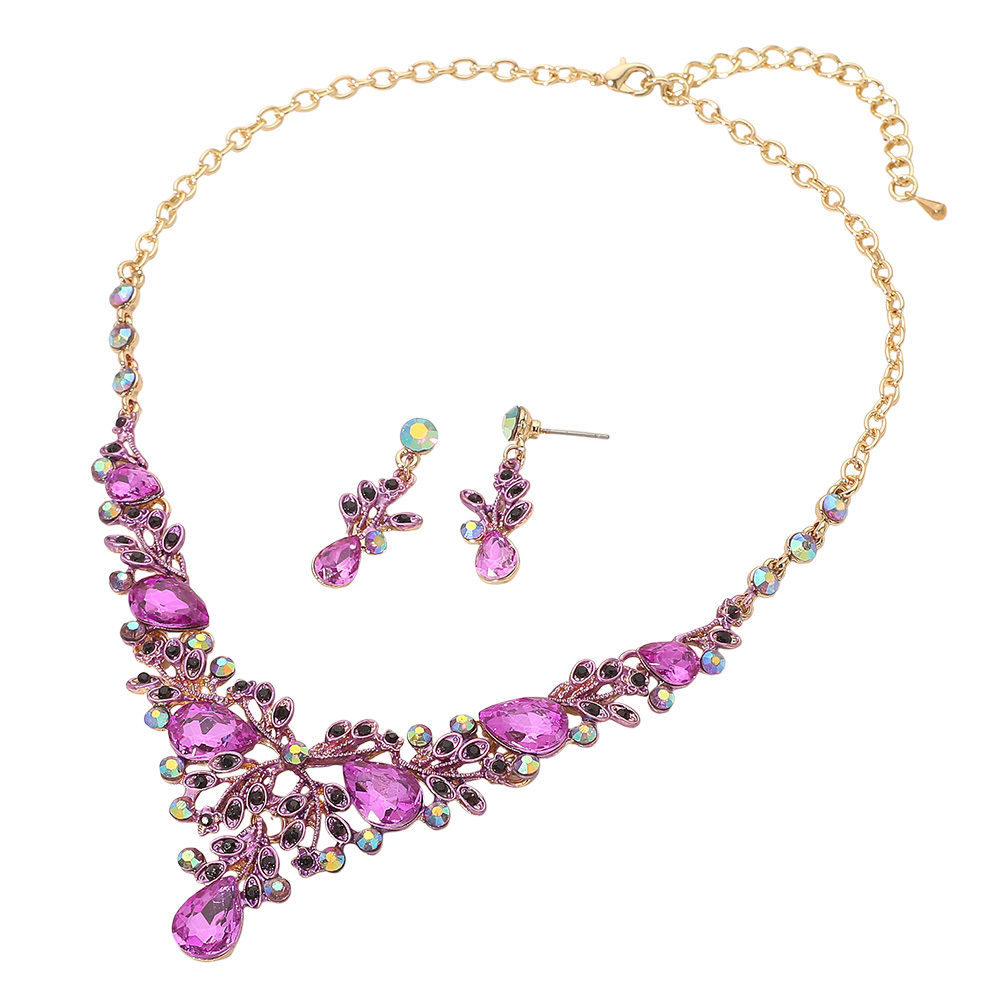 Teardrop Stone Cluster Embellished Branch Evening Necklace