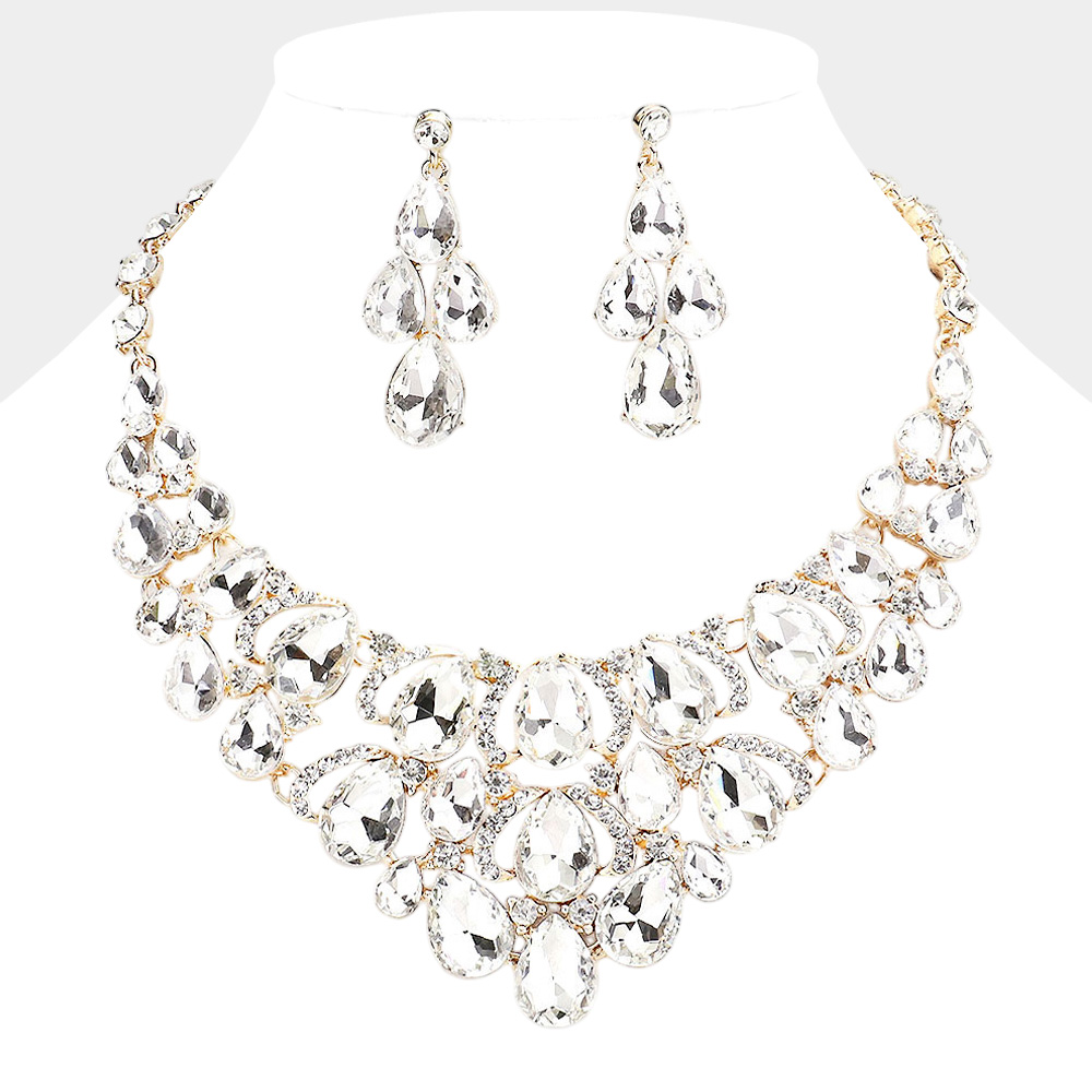 Teardrop Stone Cluster Evening Necklace