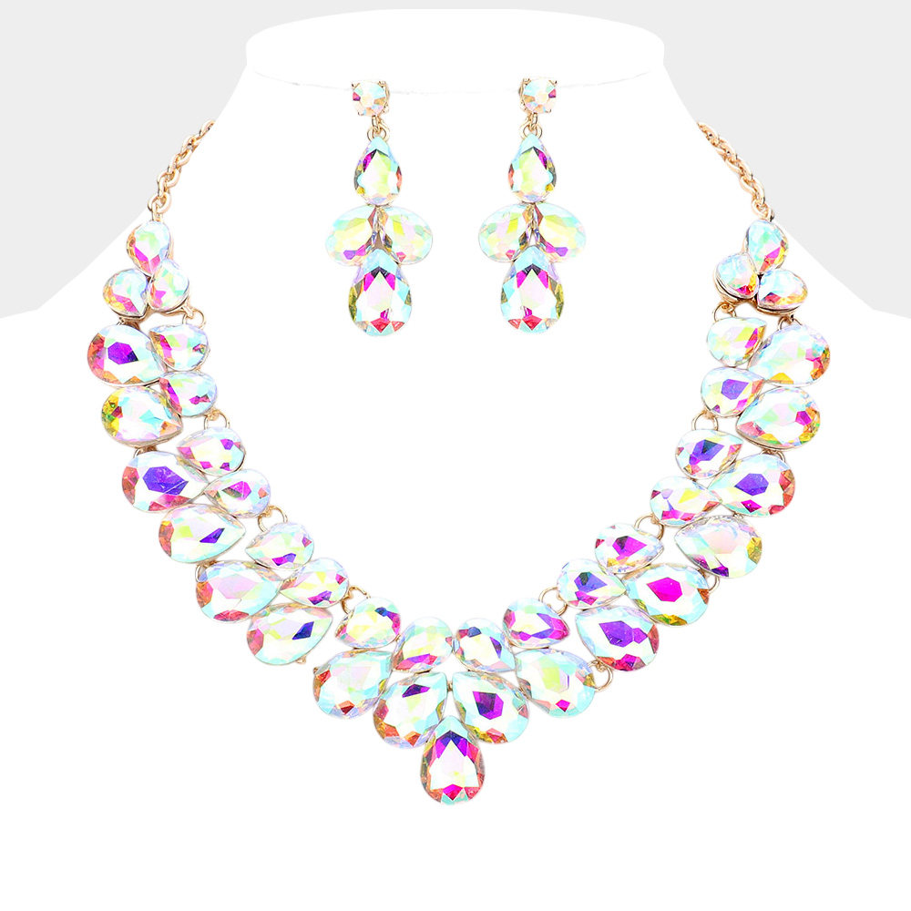 Teardrop Stone Cluster Evening Necklace
