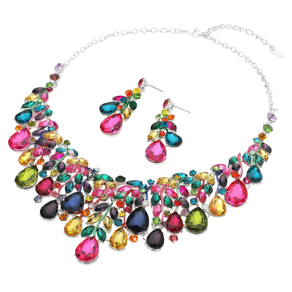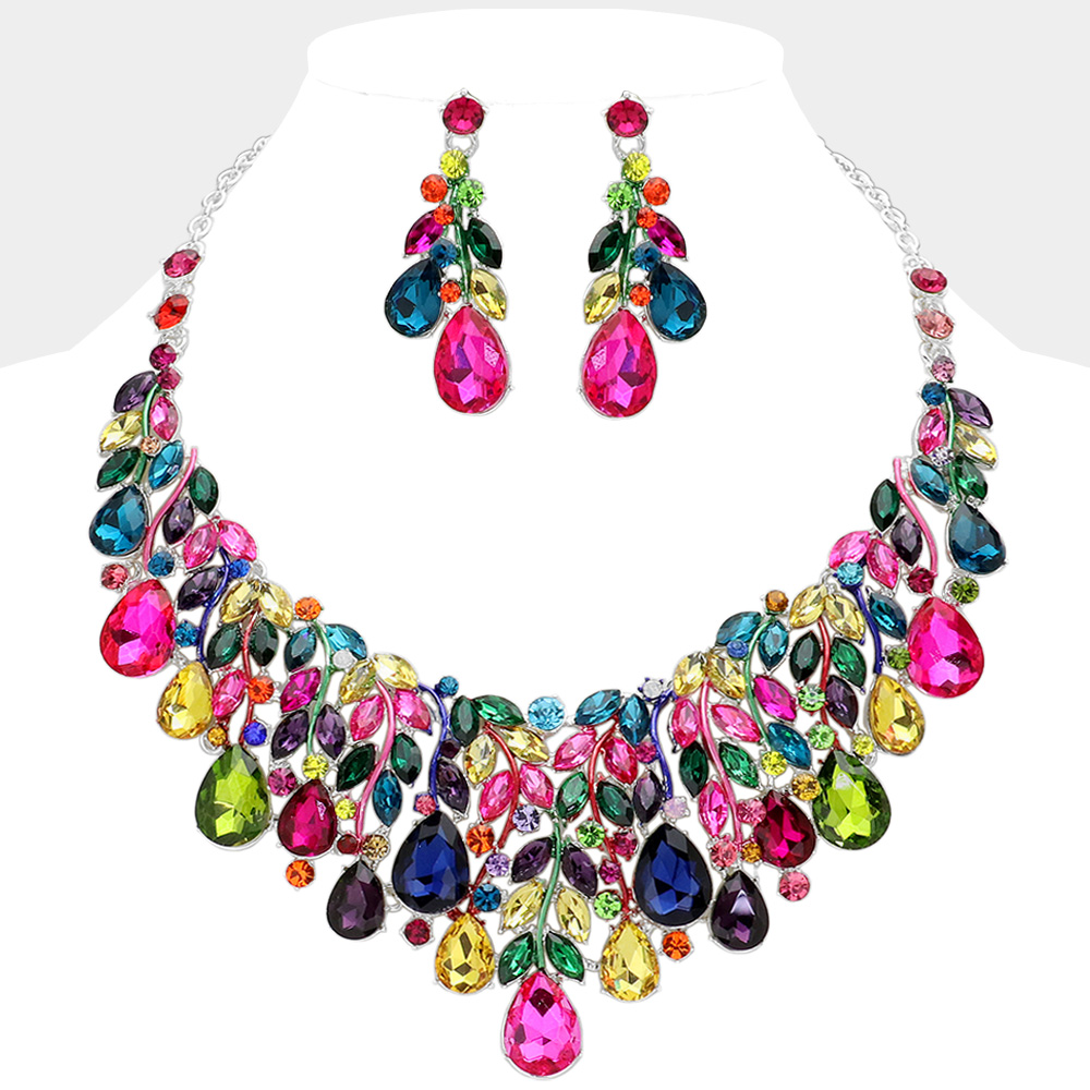 • Exquisite statement necklace and matching earrings featuring a stunning teardrop gem cluster design. Perfect for formal occasions, weddings, or evening events, this jewelry set adds instant glamour and sophistication to any outfit with its luxurious sparkle and refined detailing.