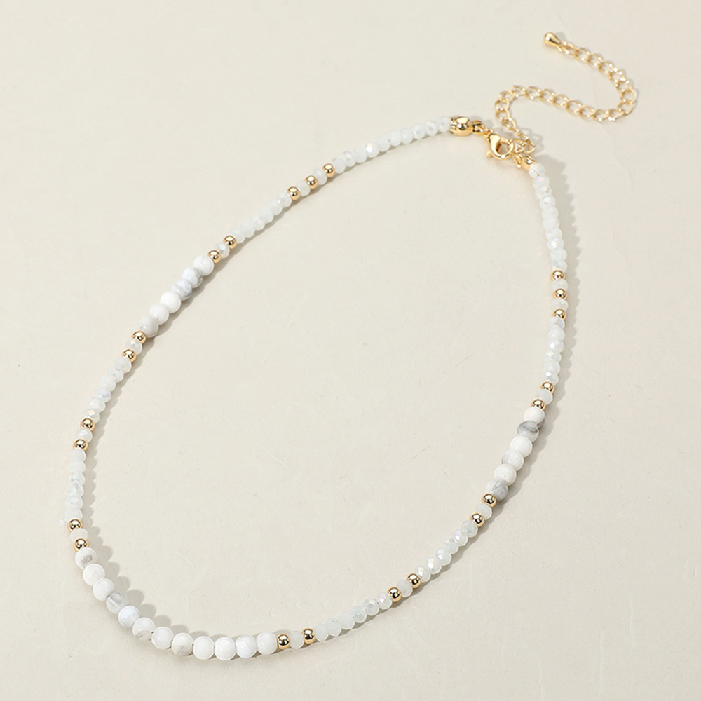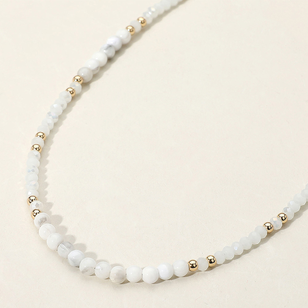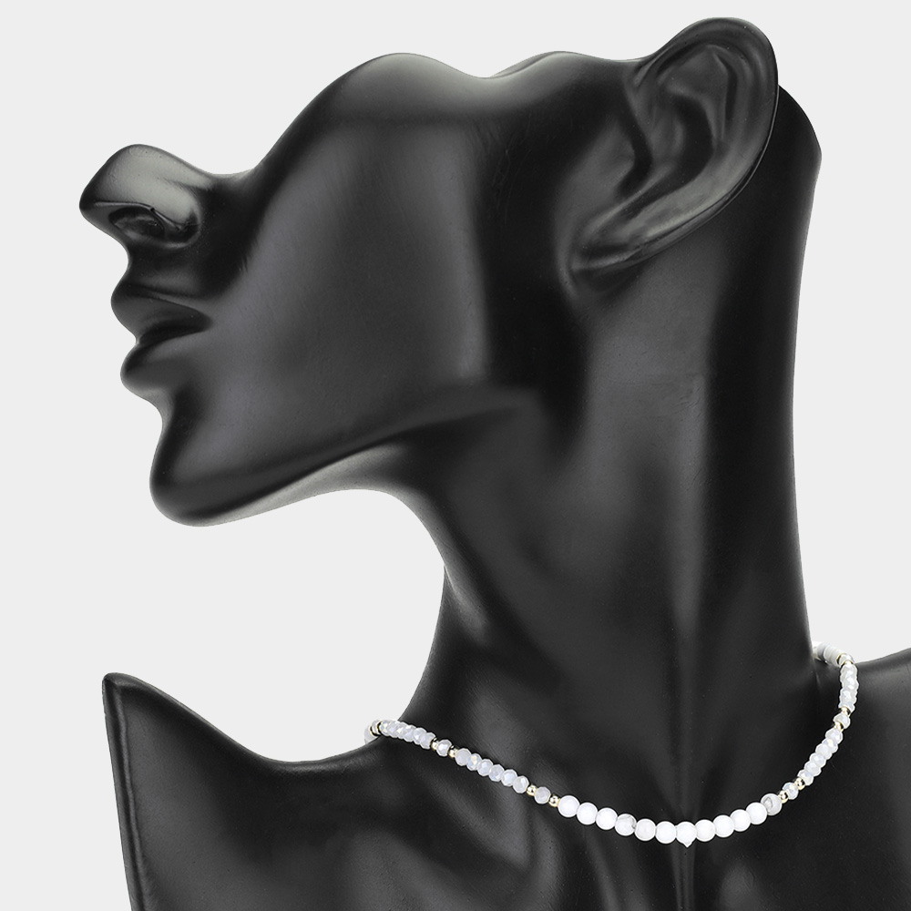 Natural Stone Metal Ball Faceted Beaded Choker Necklace