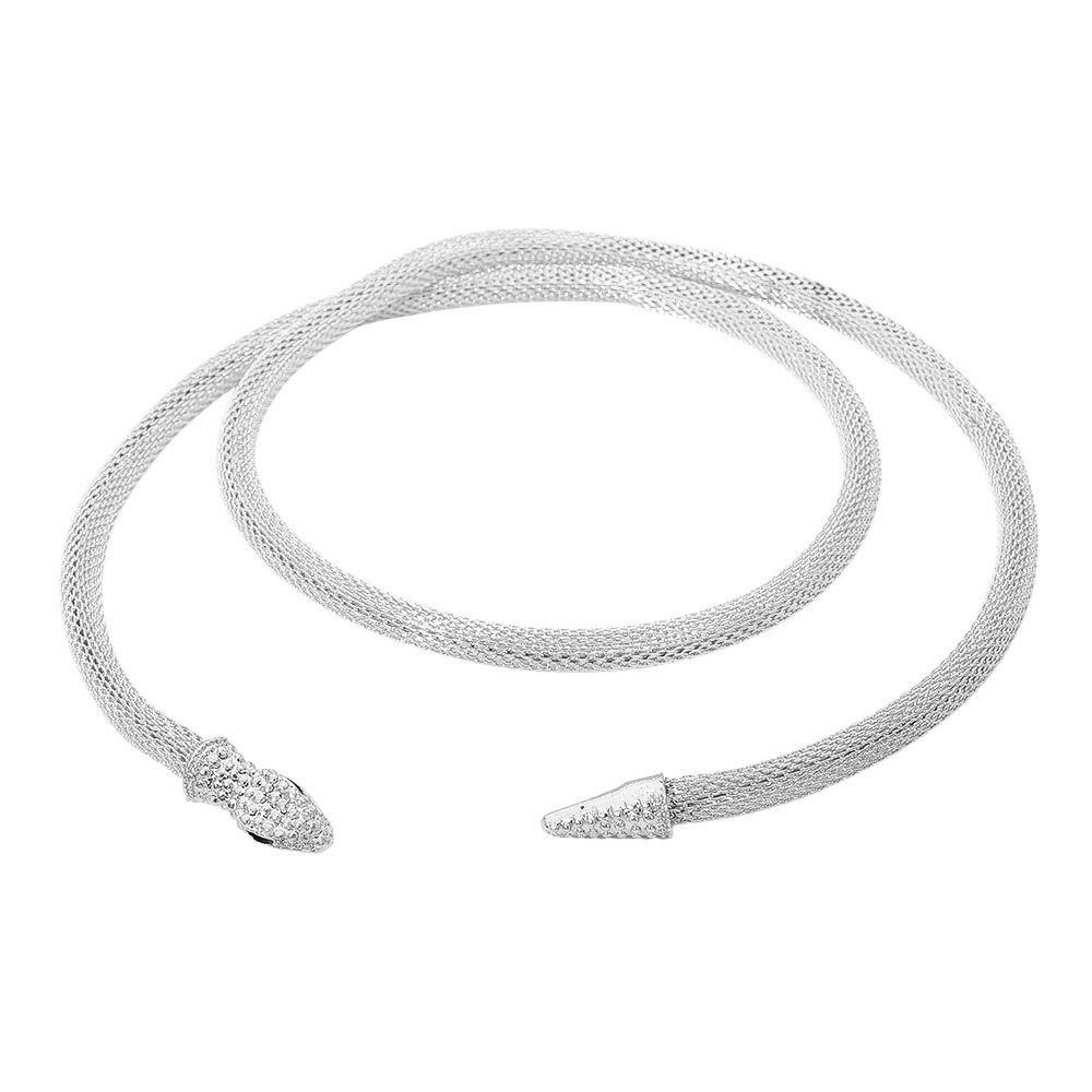 Details • Size : 34" L • Decor Size : 0.5" L • Make a bold fashion statement with the Elegant Snake Choker Necklace featuring a textured mesh design and sparkling tip accents. Its flexible wrap style and refined shine bring modern sophistication and timeless allure to any outfit, perfect for both evening and casual wear. • Lead and Nickel Compliant