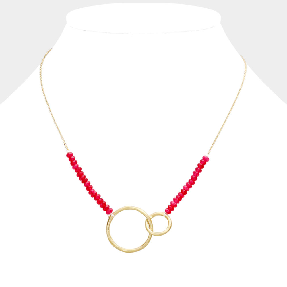 Oval Natural Stone Pendant Wood Ball Long Necklace