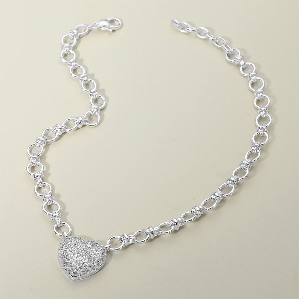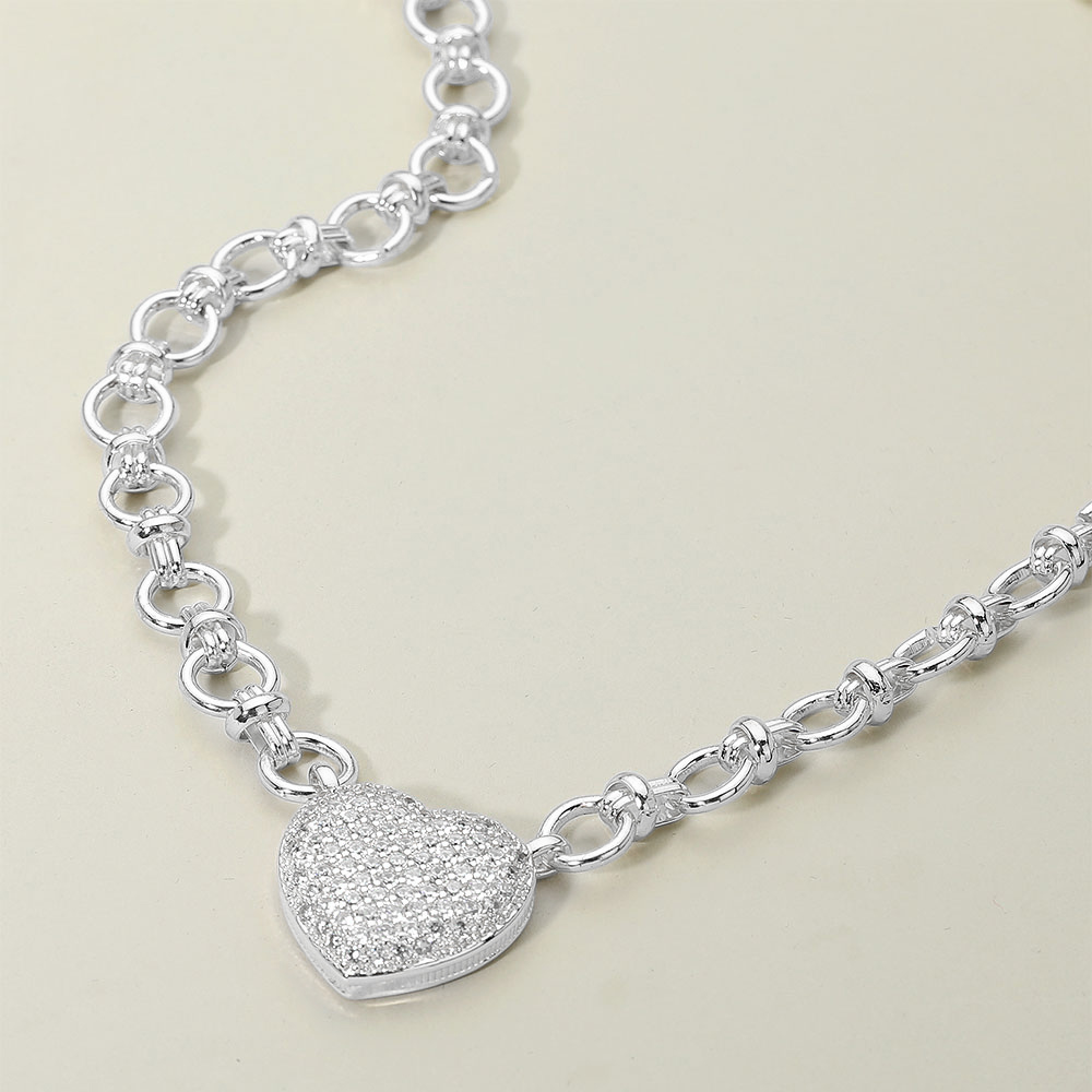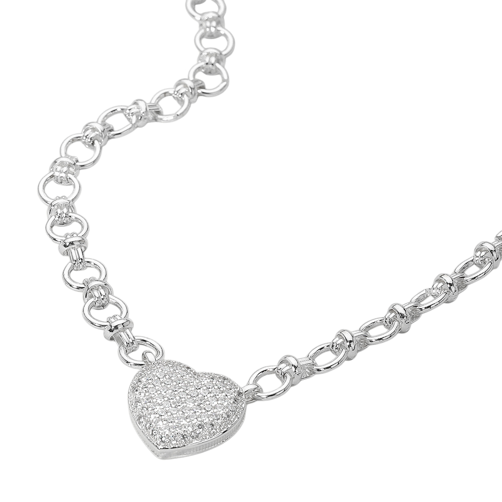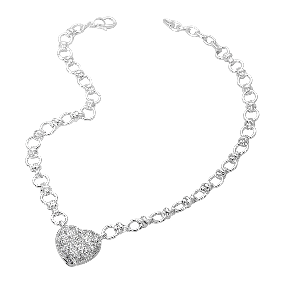 Details • Necklace Size : 18" + 2" L • Decor Size : 1" L • Chic necklace featuring a sparkling pave heart pendant suspended from a bold link chain. A timeless accessory that blends romance with modern style, making it ideal for layering or wearing as a statement piece. • CZ Cubic Zirconia • Gold Dipped