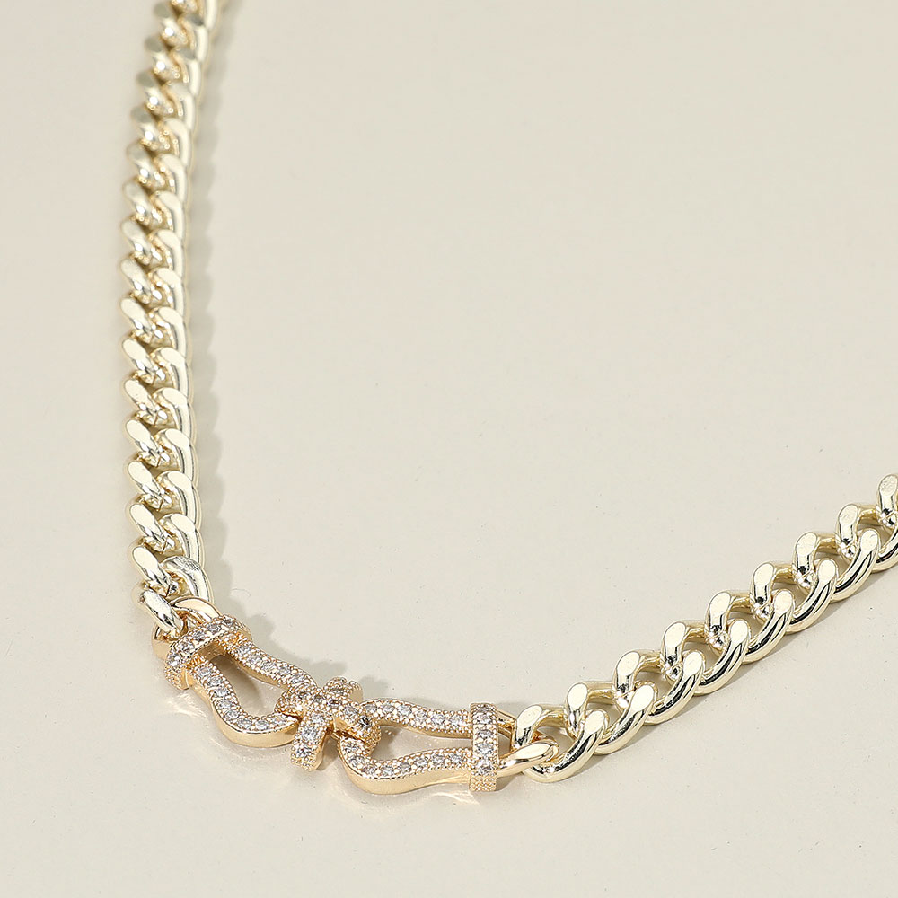 • Elevate your look with this elegant chain link necklace featuring a refined crystal-accented clasp detail. The bold yet timeless design exudes sophistication, making it a versatile accessory for both day and night. Perfect for layering or wearing solo for a polished statement finish.