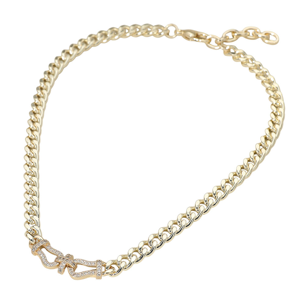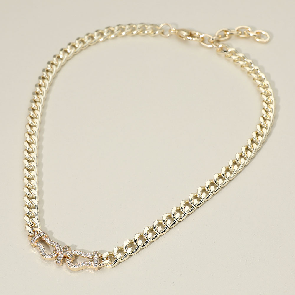 14K Gold Plated CZ Stone Paved Horsebit Accent Chunky Cuban Chain Necklace 14K Gold Plated CZ Stone Paved Horsebit Accent Chunky Cuban Chain Necklace 14K Gold Plated CZ Stone Paved Horsebit Accent Chunky Cuban Chain Necklace