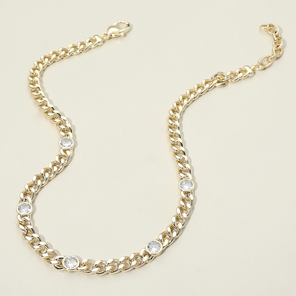 Details • Necklace Size : 17" + 2.25" L • Decor Size : 0.3" L • Chain link necklace featuring evenly spaced stone accents for a polished, modern look. Designed for everyday wear or layered styling, this necklace adds subtle shine to casual or dressy outfits. Ideal for boutiques, gift assortments, and trend-focused jewelry collections. • CZ Cubic Zirconia • Gold Dipped