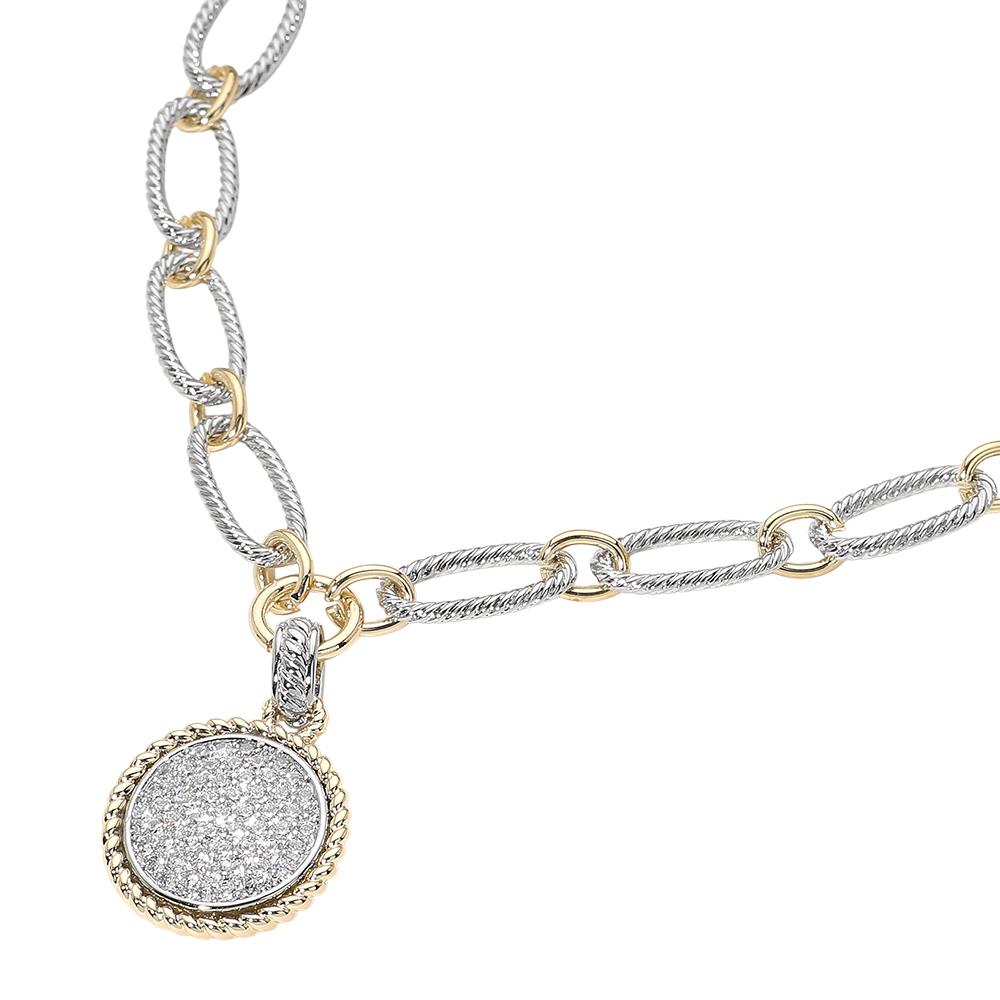 Details • Necklace Size : 15.5" + 1" L • Decor Size : 0.4" L • Pendant Size : 1" X 1.5" • Elegant link chain necklace featuring a refined oval sparkle pendant designed to add instant polish to everyday and dressy looks. The balanced chain style offers a modern statement that layers effortlessly or stands alone as a timeless accessory for boutiques and gift selections. • CZ Cubic Zirconia • Gold Dipped