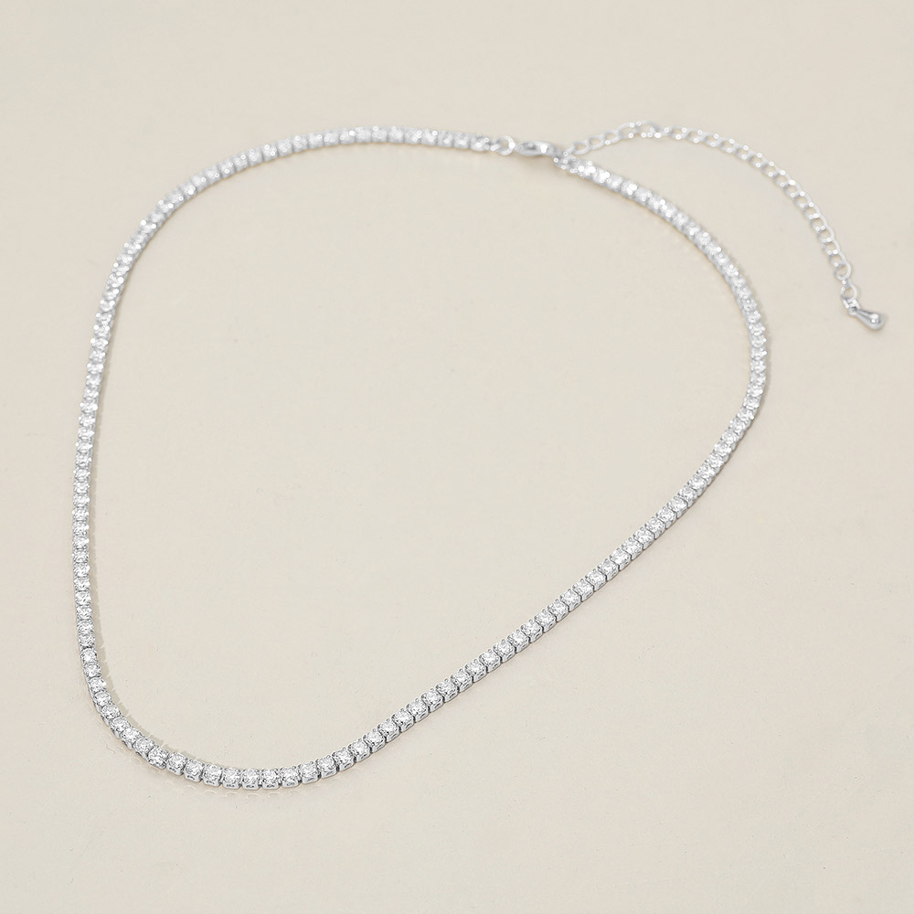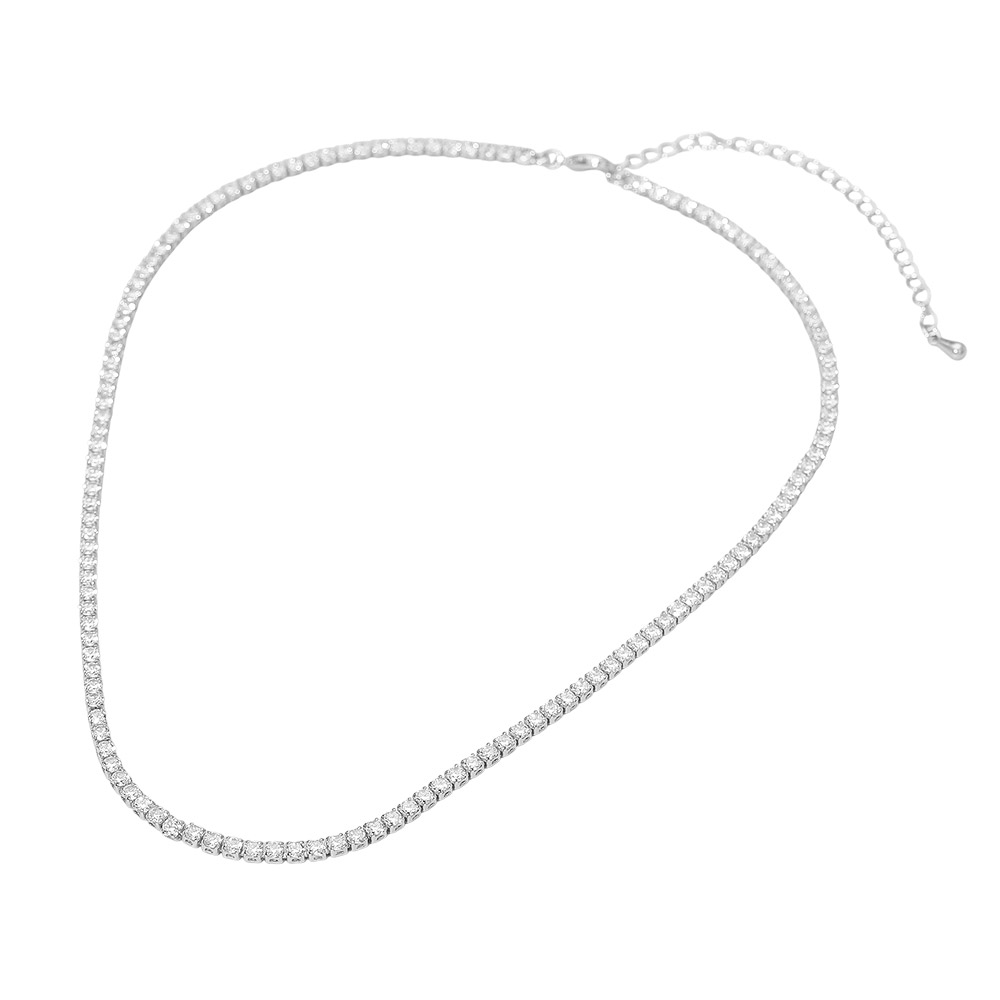 • Refined tennis chain necklace featuring a row of sparkling crystal accents for a timeless and luxurious look. Perfect for layering or wearing solo, it enhances any outfit with subtle sophistication. Ideal for special occasions or daily elegance in any jewelry collection.