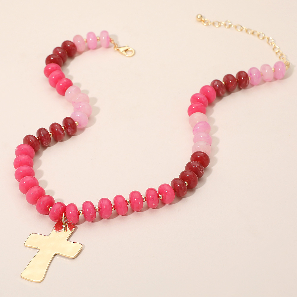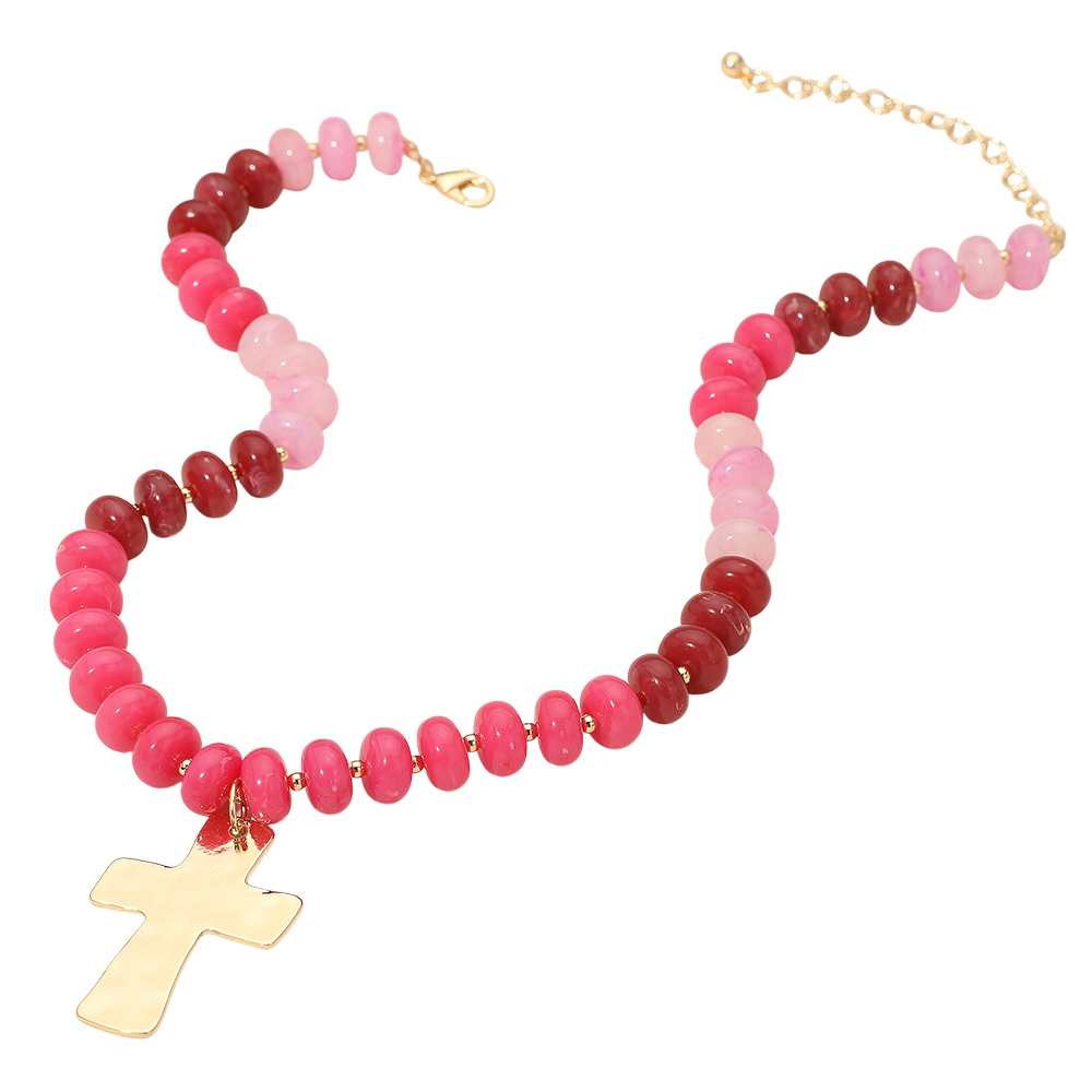 Details • Necklace Size : 18" + 3" L • Decor Size : 0.4" L • Pendant Size : 1.25" X 1.75" • Express timeless style with this beaded necklace featuring smooth multitone beads and a bold cross pendant. Ideal for layering or wearing as a statement piece, it’s perfect for both casual and special occasions, adding meaning and elegance to any look. • Gold Dipped • Lead and Nickel Compliant