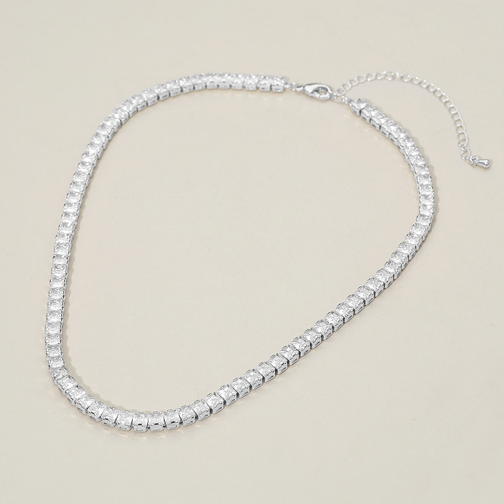 • Contemporary tennis necklace adorned with square-cut crystals for a bold and elegant sparkle. Perfect for layering or wearing solo, it complements both casual and formal looks. A refined jewelry piece that adds luxury, brilliance, and timeless sophistication to any style.