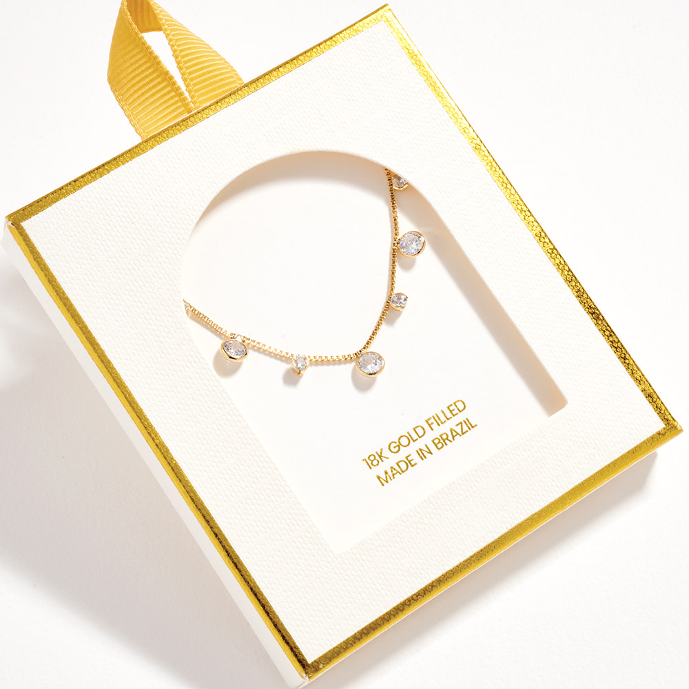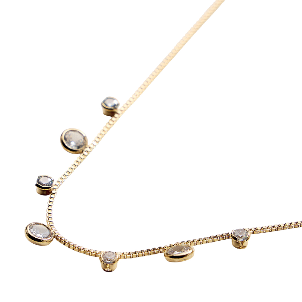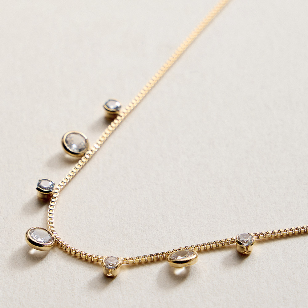 18K Gold Filled CZ Stone Bezel Charm Station Necklace