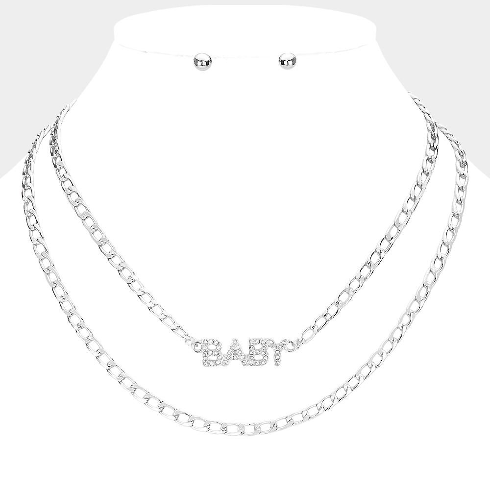 2PCS - BABY Rhinestone Embellished Pendant Message Necklaces