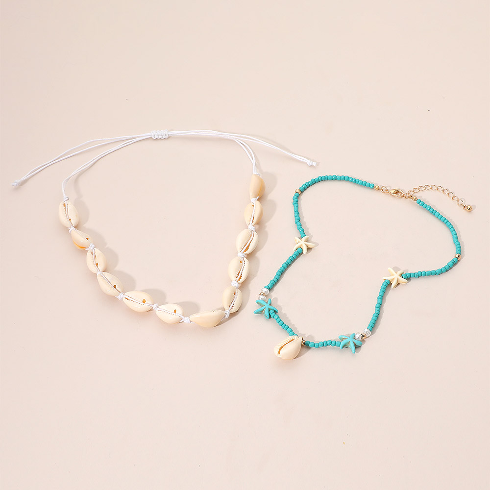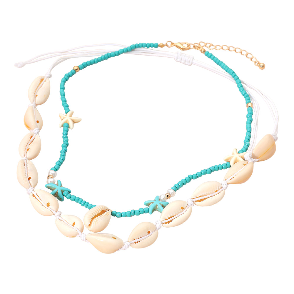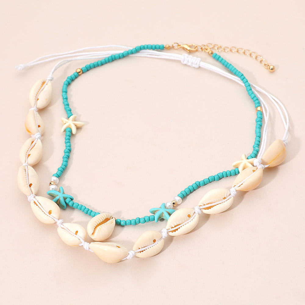 Details • Necklace 1 Size : 25" L, 0.5" L / Adjustable • Necklace 2 Size : 15" + 2.5" L, 0.9" L • Embrace coastal charm with this layered shell and bead necklace, featuring natural shells, turquoise beads, and delicate star accents. Perfect for summer outings, it adds a breezy, beach-inspired touch that complements relaxed styles or vibrant vacation looks with effortless ease. • Lead and Nickel Compliant