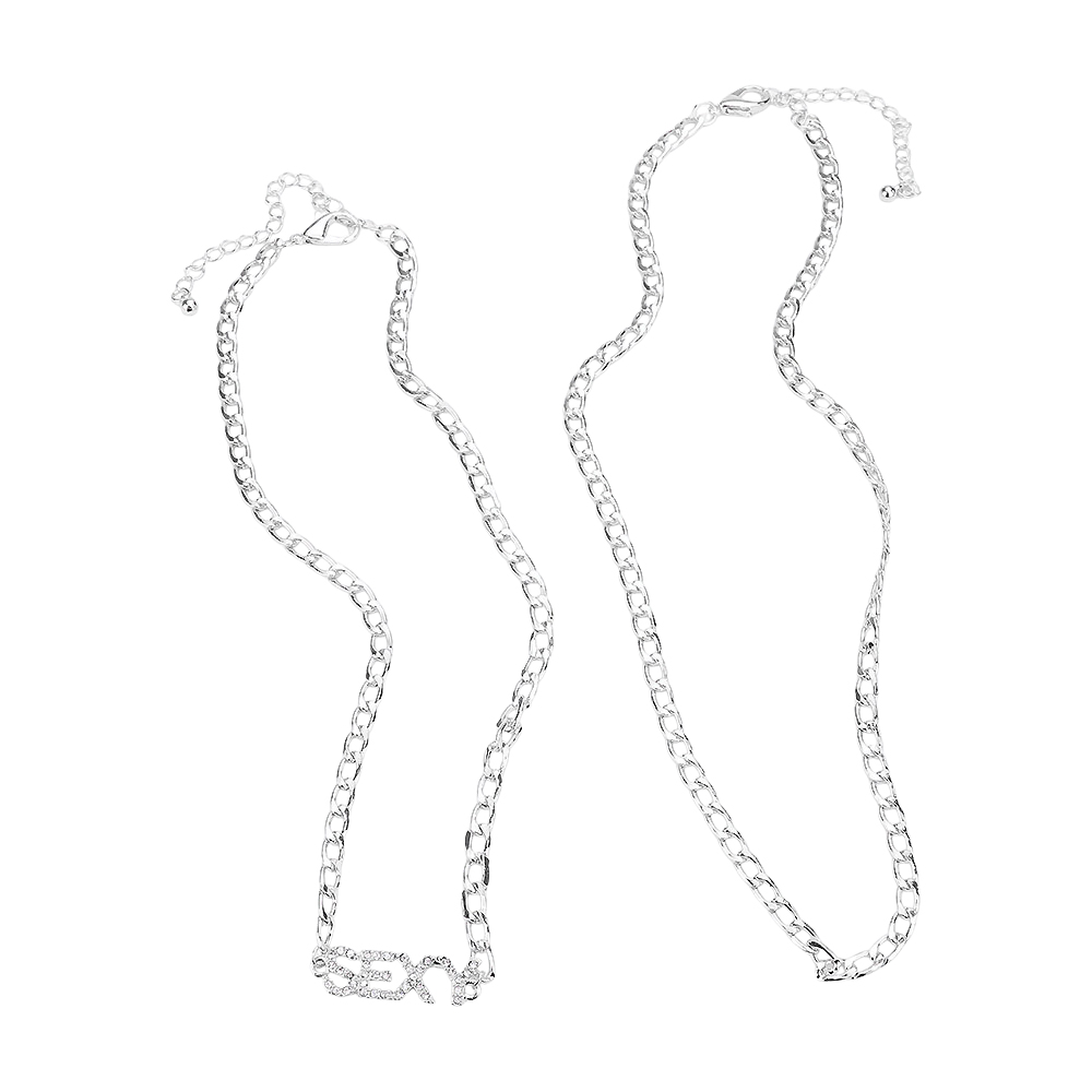 2PCS - SEXY Rhinestone Embellished Pendant Message Necklaces