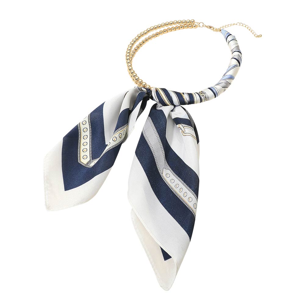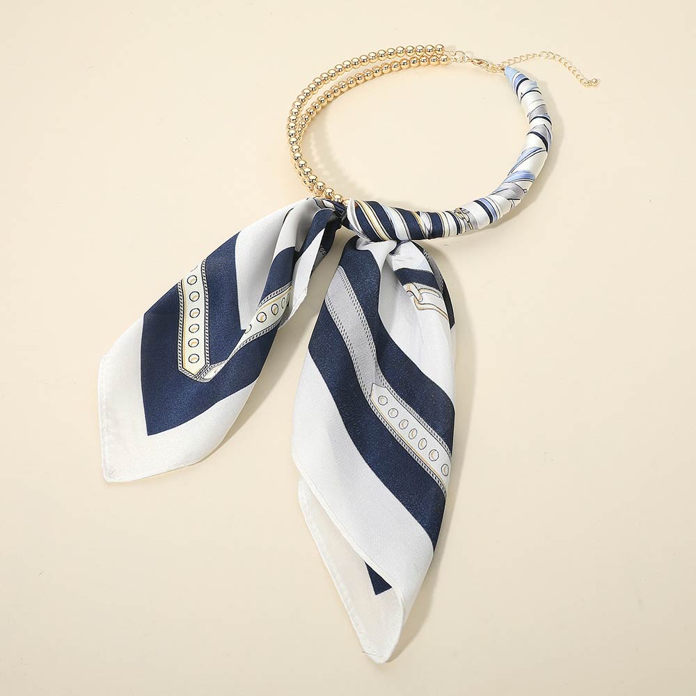 Abstract Pattern Fabric Scarf Double Bubble Chain Necklace