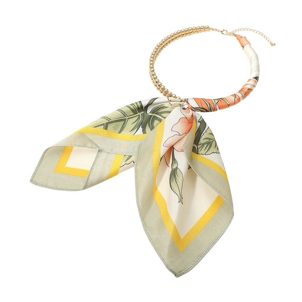 Abstract Pattern Fabric Scarf Double Bubble Chain Necklace