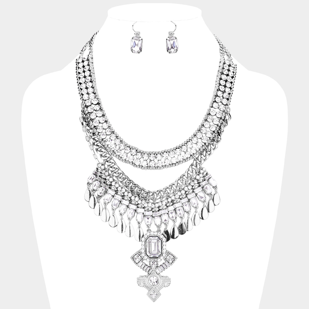 Antique Stone Embellished Statement Necklace