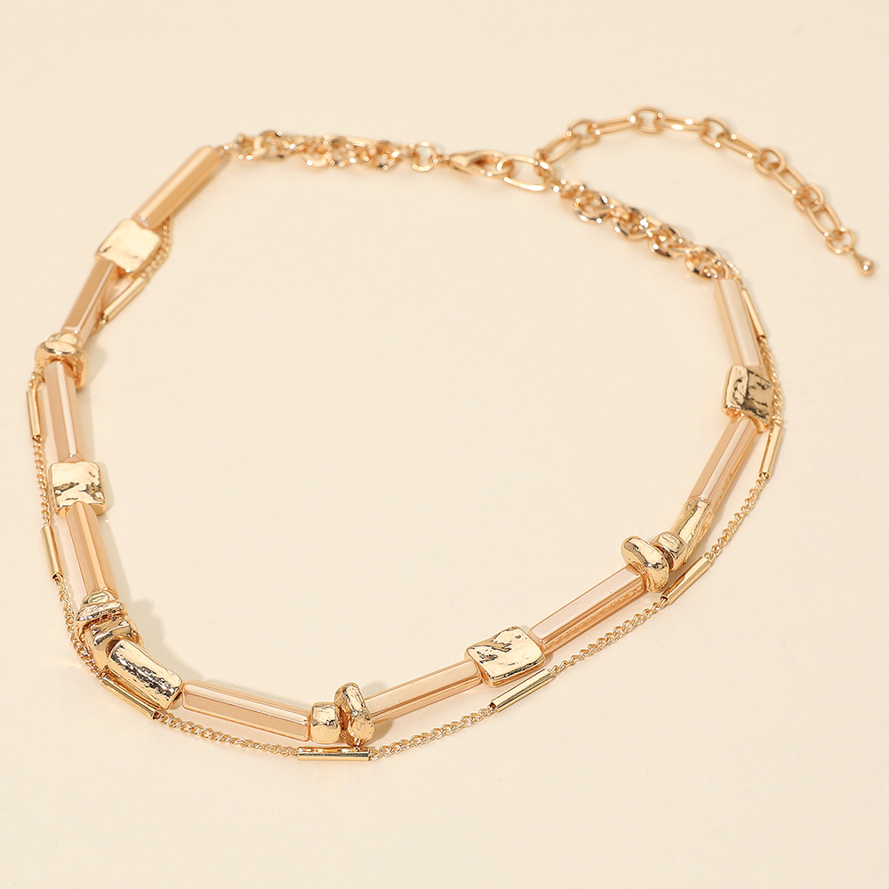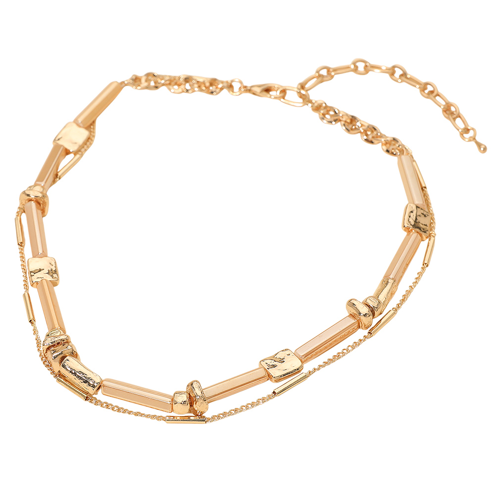 Details • Necklace Size : 14.5" + 3.25" L • Decor Size : 1" L • Refine your look with this layered link detail necklace featuring mixed chain styling and sculpted accents for a modern, elevated finish. Designed to wear effortlessly from casual to dressy moments, it adds dimension when layered or makes a striking standalone statement. • Lead and Nickel Compliant