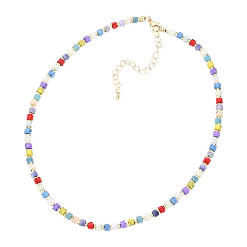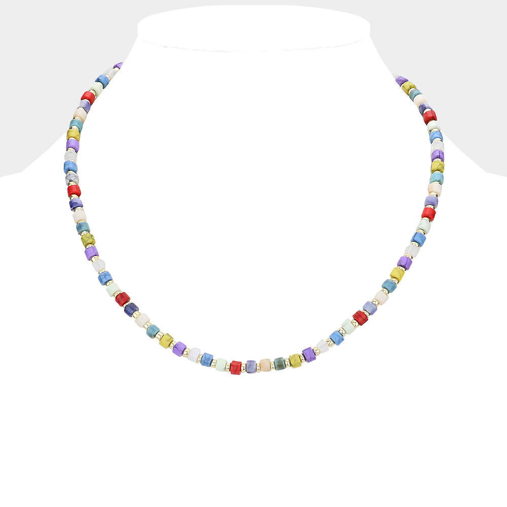 Chunky Marbled Resin Pebble Beaded Statement Necklace