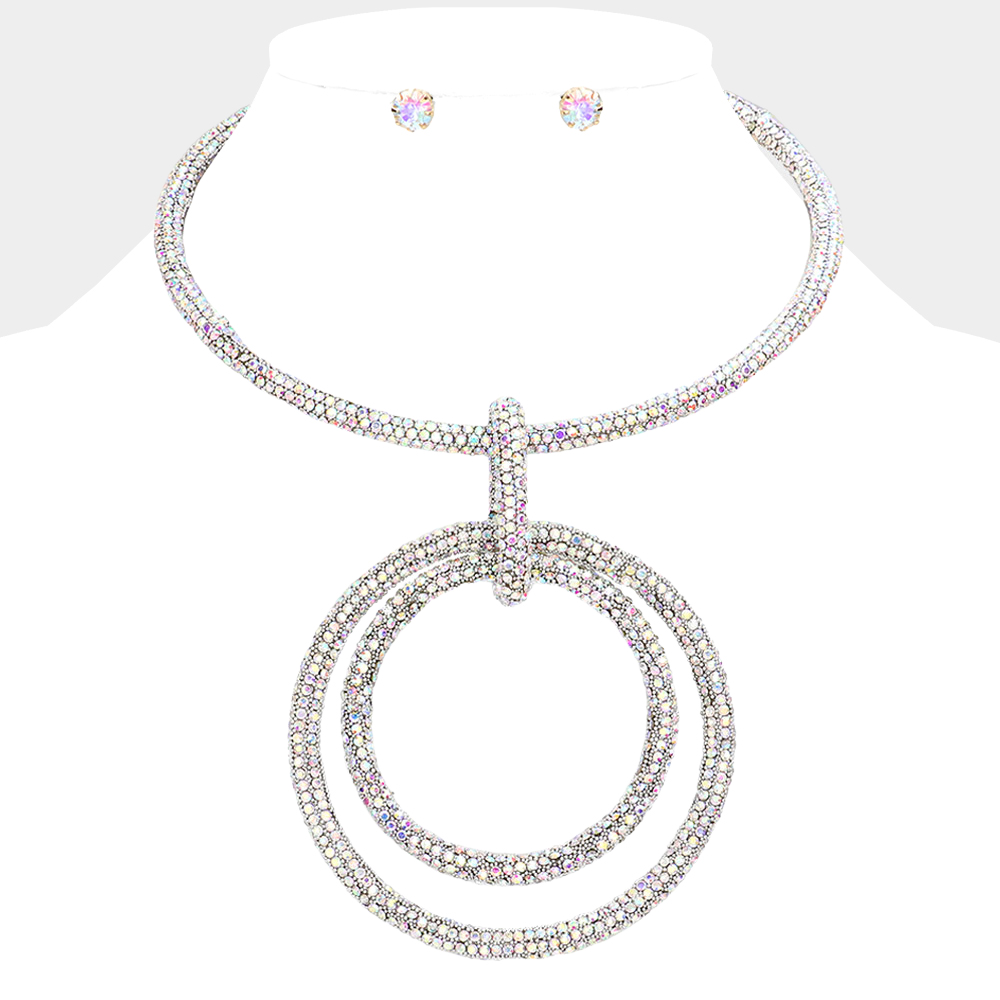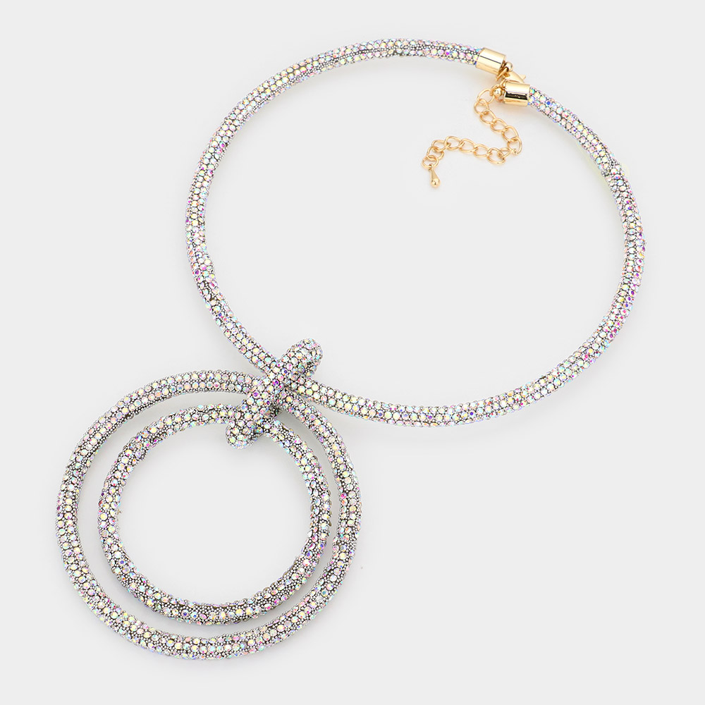 Teardrop Stone Cluster Accent Rhinestone Paved Y Shape Necklace