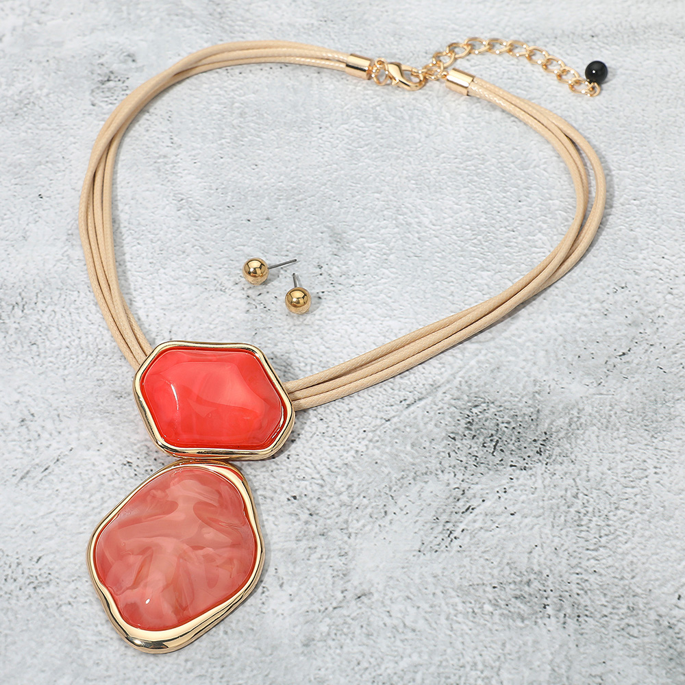 Bold Abstract Double Resin Link Pendant Statement Necklace