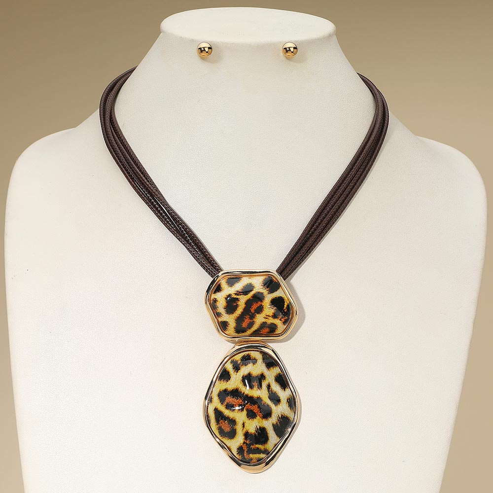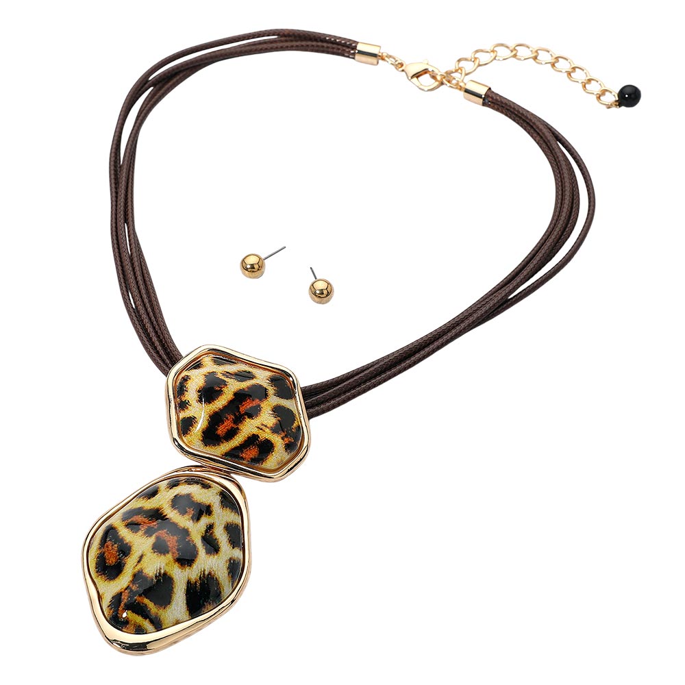 • Bold pendant necklace paired with coordinating stud earrings for a complete look. The unique layered design adds eye-catching detail, making this set perfect for elevating casual outfits or complementing evening attire with effortless elegance.