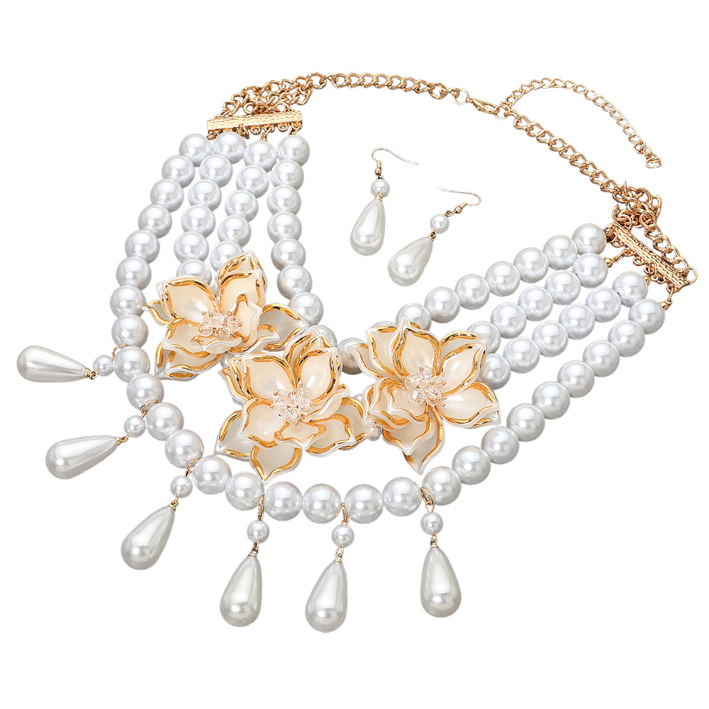 Bold Floral Embellished Pearl Strand Statement Necklace Bold Floral Embellished Pearl Strand Statement Necklace Bold Floral Embellished Pearl Strand Statement Necklace