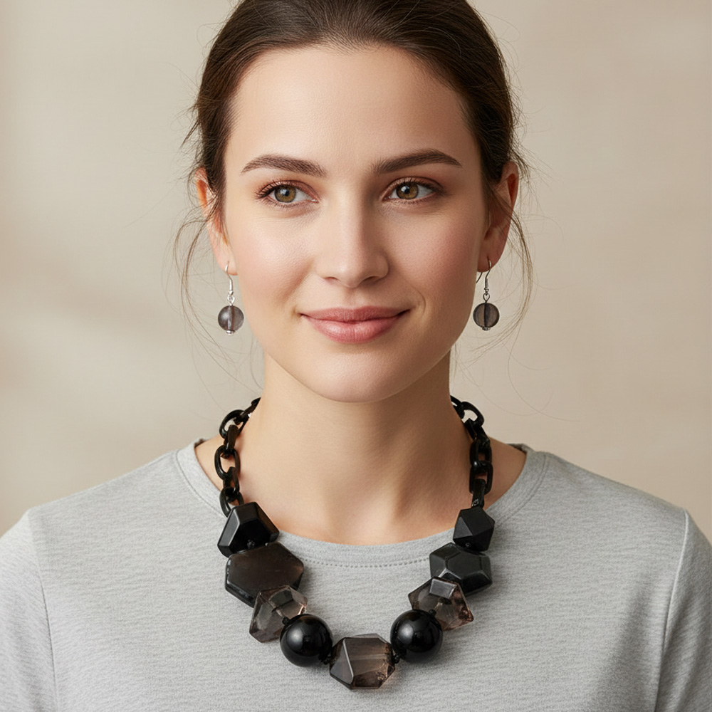 • Create bold impact with this geometric bead necklace and matching earring set designed for statement styling. Perfect for elevating everyday looks or completing evening outfits, it offers coordinated elegance and modern flair that makes a thoughtful gift or standout personal accessory.