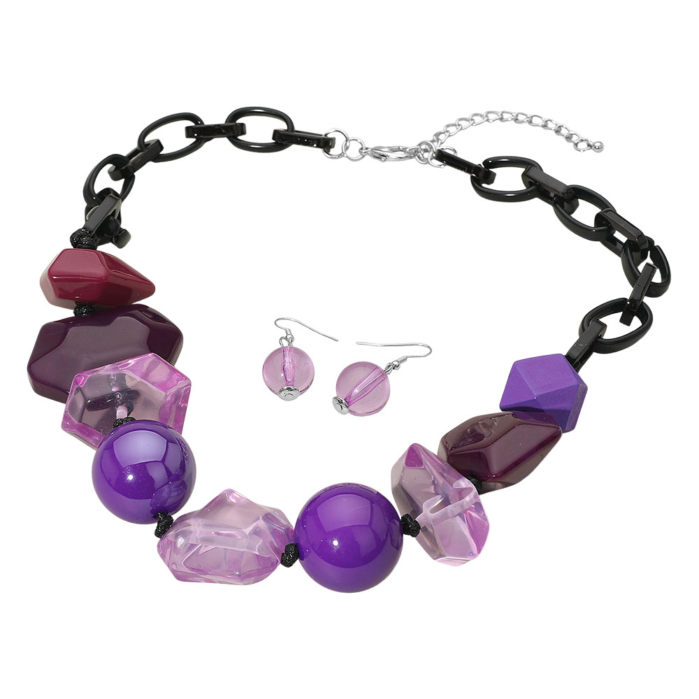 • Create bold impact with this geometric bead necklace and matching earring set designed for statement styling. Perfect for elevating everyday looks or completing evening outfits, it offers coordinated elegance and modern flair that makes a thoughtful gift or standout personal accessory.
