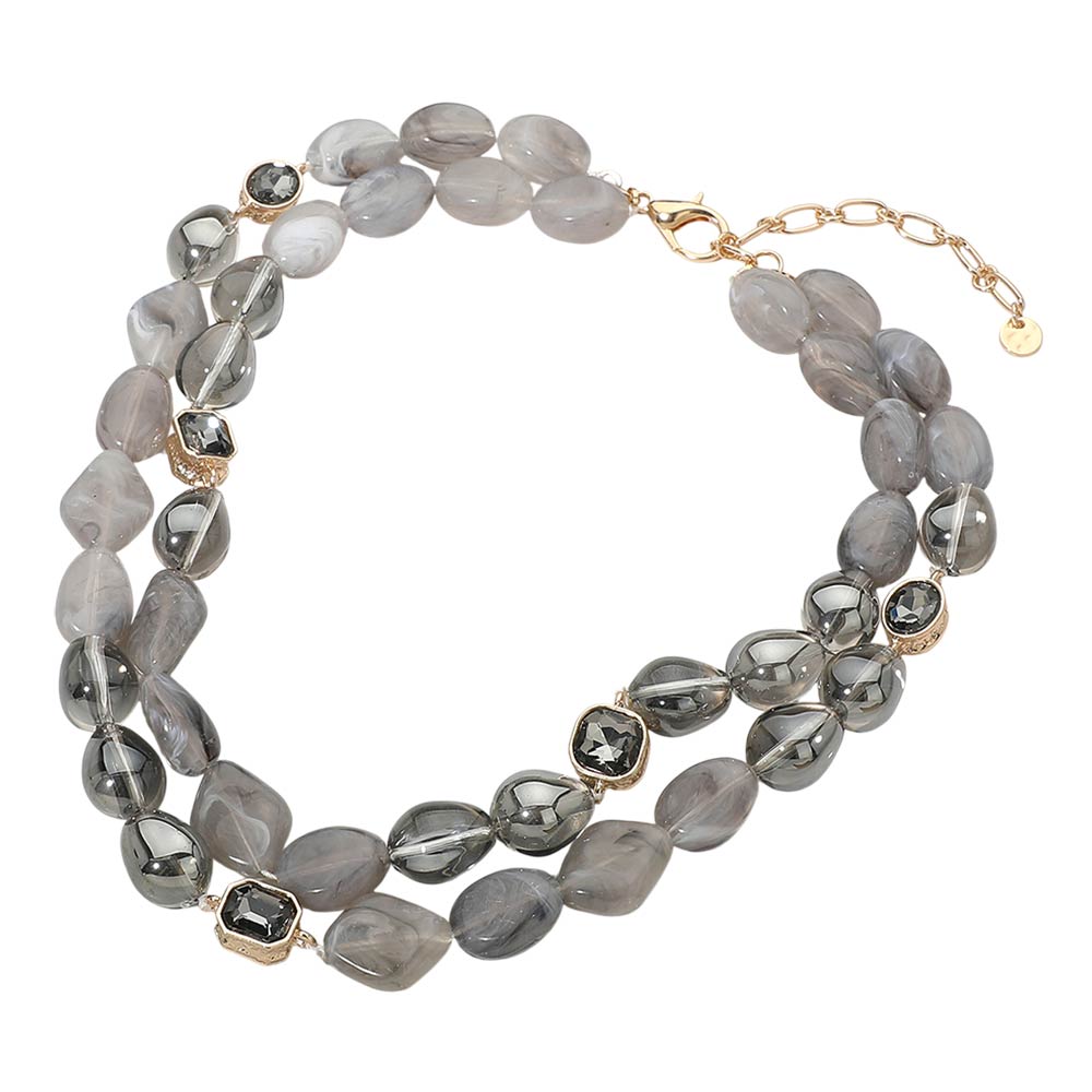 Details • Necklace Size : 17.5" + 3.75" L • Decor Size : 1.4" L • Elegant layered necklace featuring smooth bead strands with faceted accent details and an adjustable extension chain for a comfortable fit. The layered silhouette adds depth and visual interest, making it ideal for everyday styling or elevated looks. Designed to pair effortlessly with casual outfits, workwear, or evening ensembles, this versatile necklace brings a refined yet modern touch to any jewelry collection. • Lead and Nickel Compliant