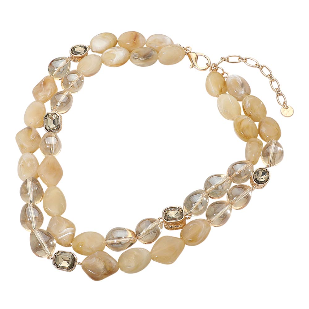 Bold Layered Marbled Pebble Faceted Beaded Necklace