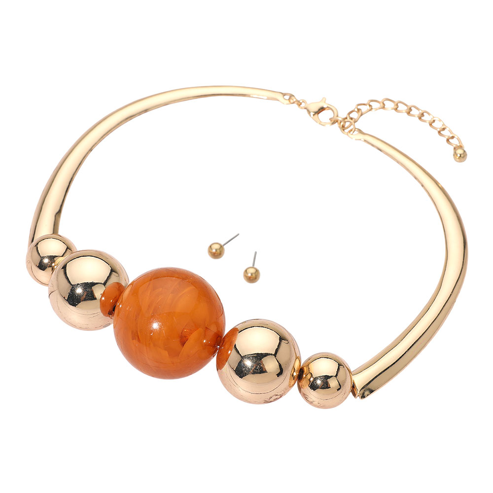Bold Marbled Resin Metal Ball Beaded Statement Necklace