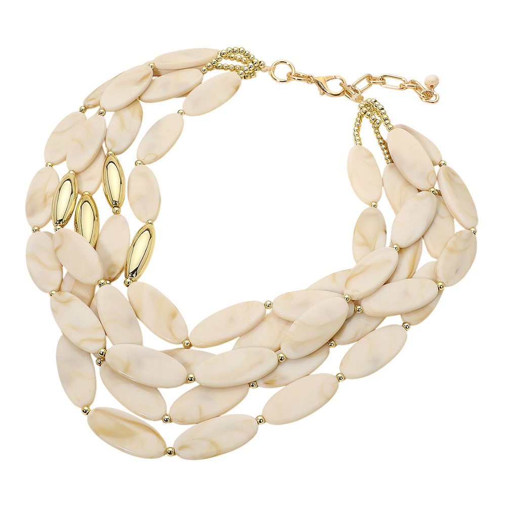 Bold Marbled Resin Oval Beaded Multi Layered Statement Necklace