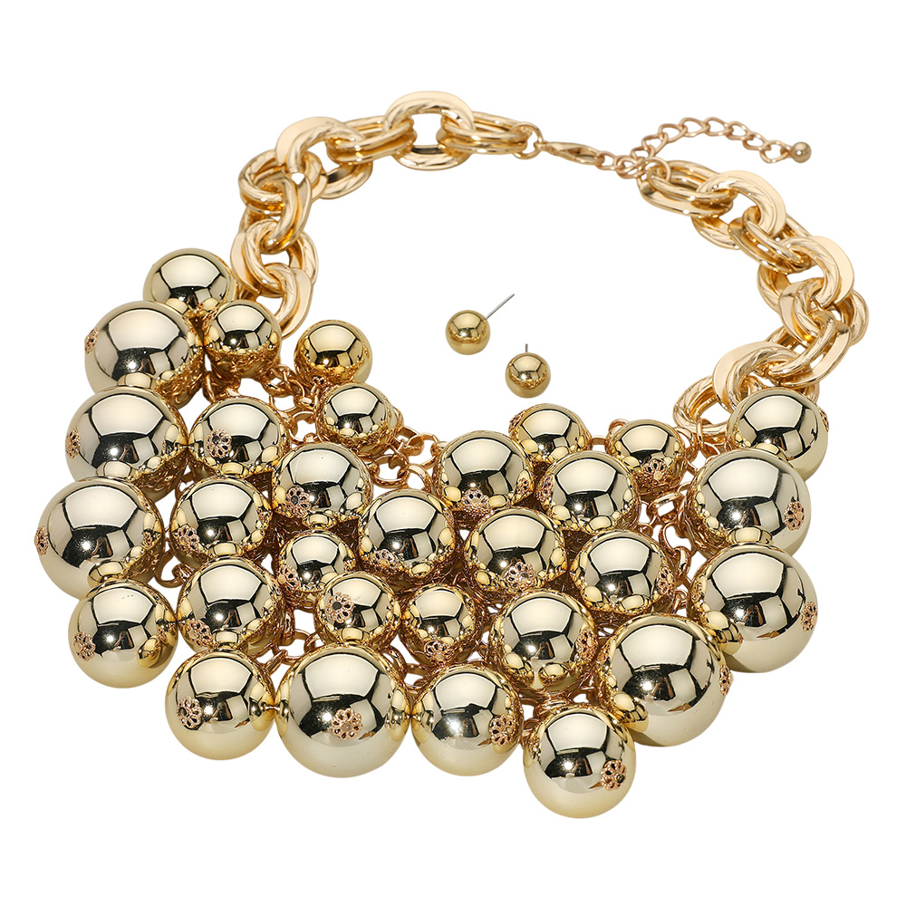 Bold Oversized Beads Embellished Collar Statement Necklace