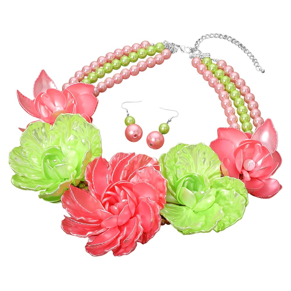 • An elegant statement necklace set featuring layered floral accents and coordinating earrings with an adjustable fit. Designed to elevate formal looks, weddings, parties, and special occasions, offering graceful style and standout detail for memorable outfits.