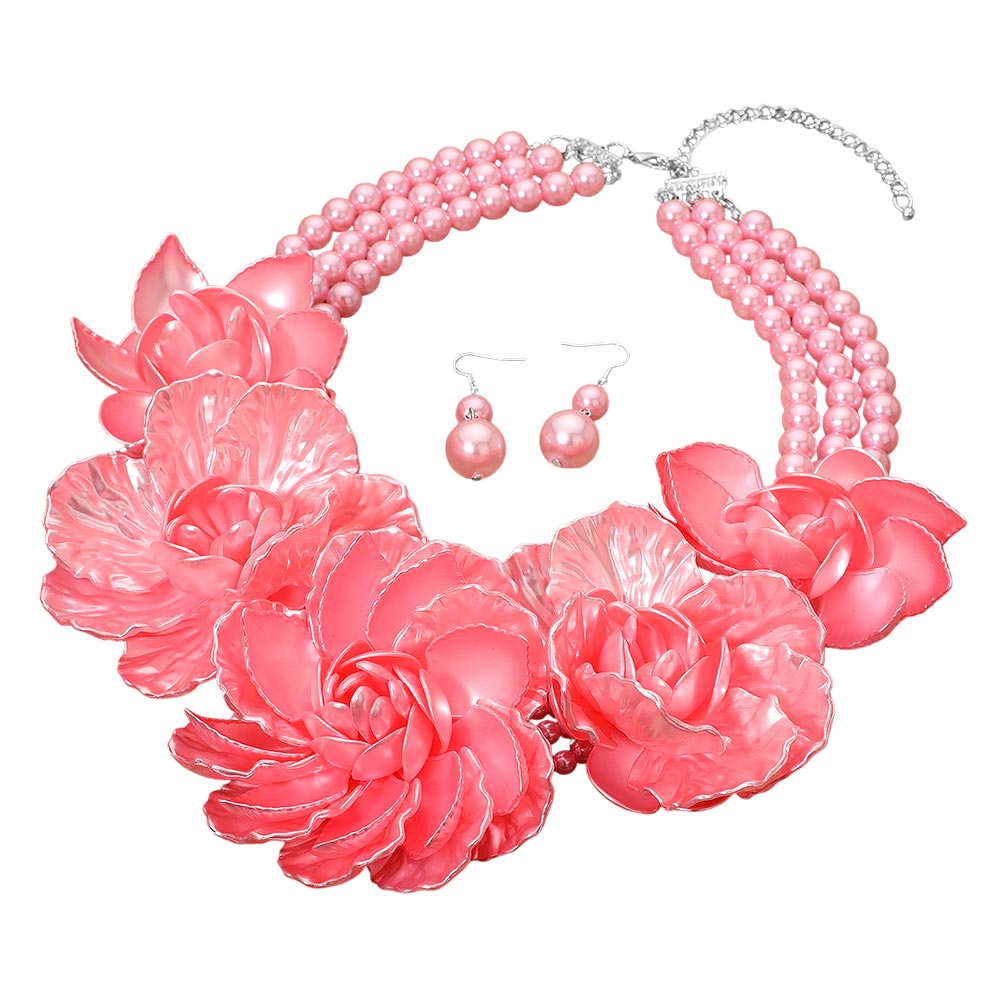 • An elegant statement necklace set featuring layered floral accents and coordinating earrings with an adjustable fit. Designed to elevate formal looks, weddings, parties, and special occasions, offering graceful style and standout detail for memorable outfits.