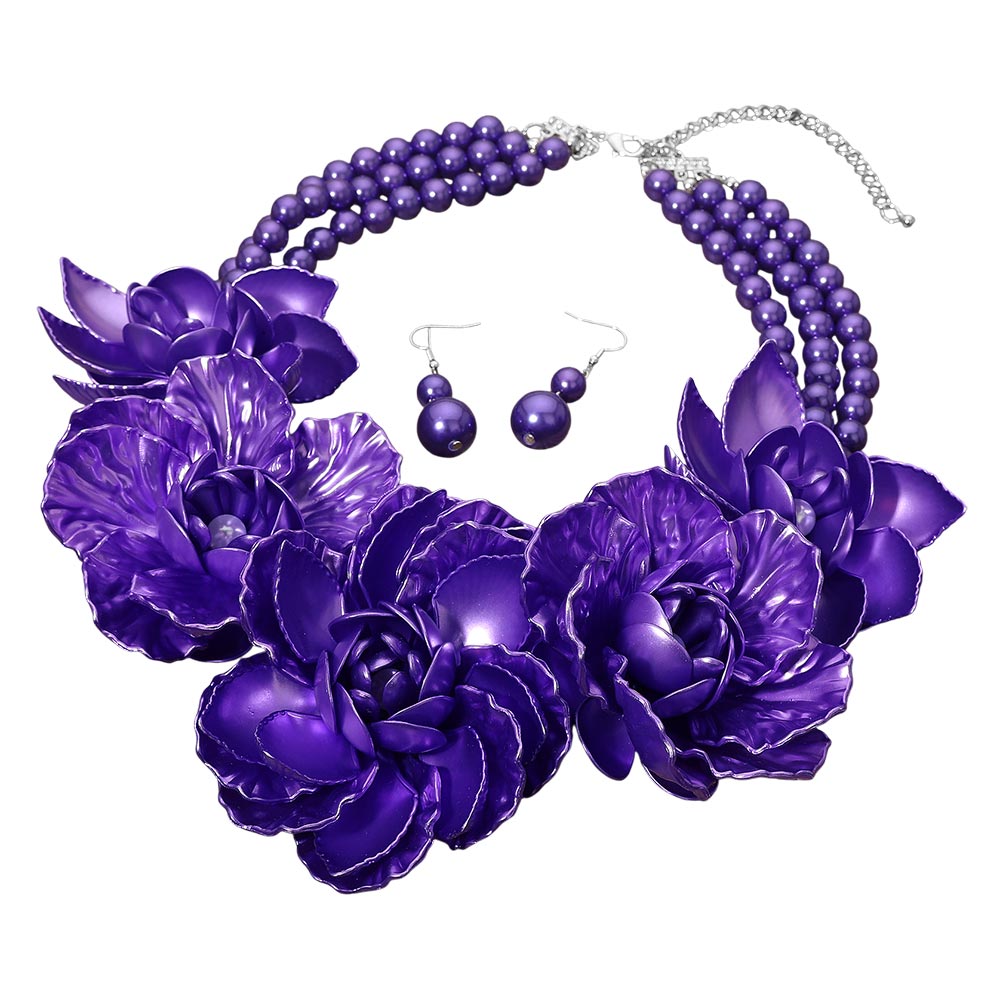 • An elegant statement necklace set featuring layered floral accents and coordinating earrings with an adjustable fit. Designed to elevate formal looks, weddings, parties, and special occasions, offering graceful style and standout detail for memorable outfits.