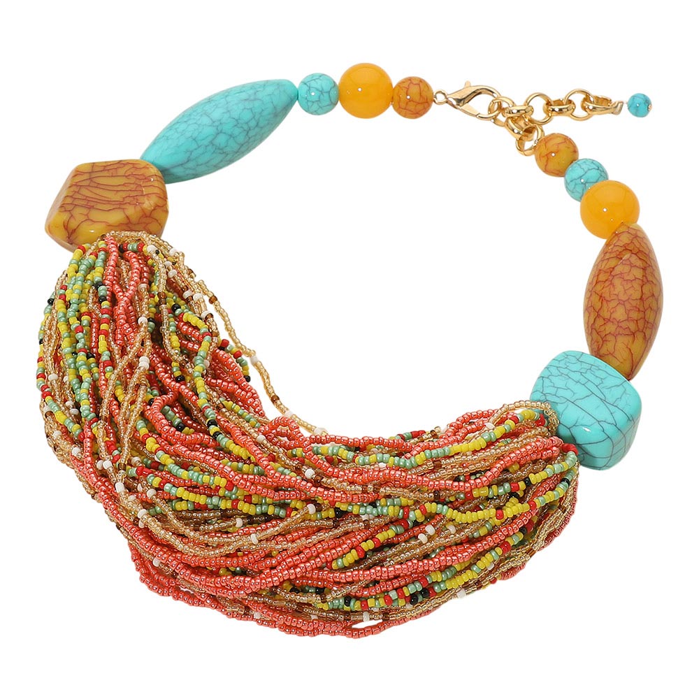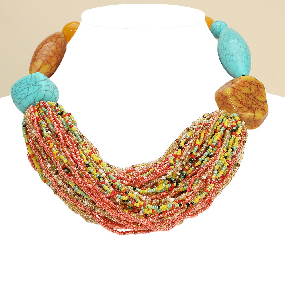 Bold Seed Beaded Multi Strand Statement Necklace