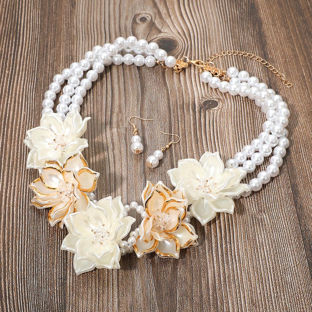 Details • Necklace Size : 23" + 4" L • Decor Size : 2.5" L • Earrings Size : 1.5" L • An elegant multi-strand necklace set featuring layered floral accents and coordinating earrings with an adjustable fit. Ideal for weddings, formal events, parties, and special occasions, delivering graceful style, lightweight comfort, and standout charm for memorable looks. • Lead and Nickel Compliant