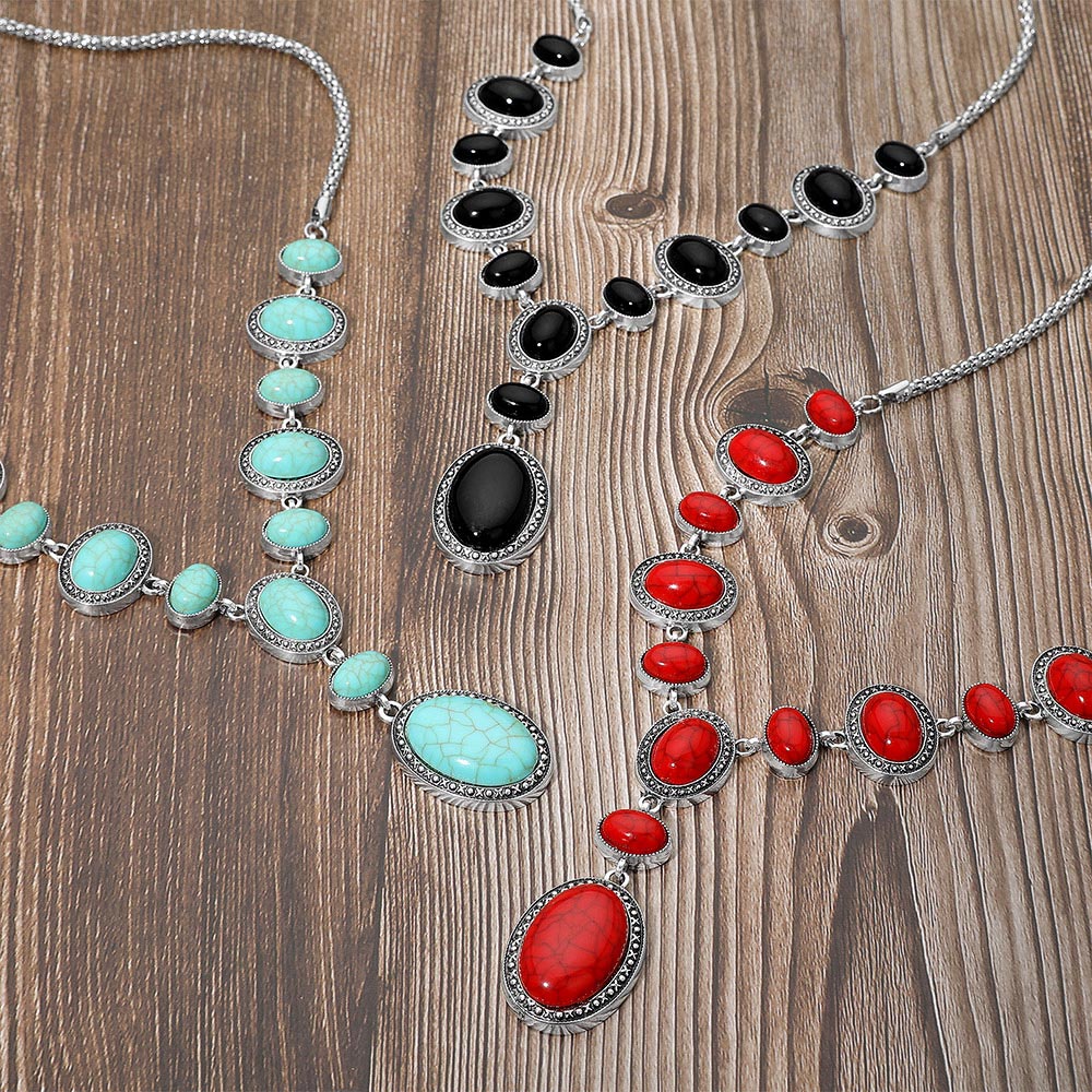 Bold Vintage Boho Oval Stone Link Cascading Statement Necklace