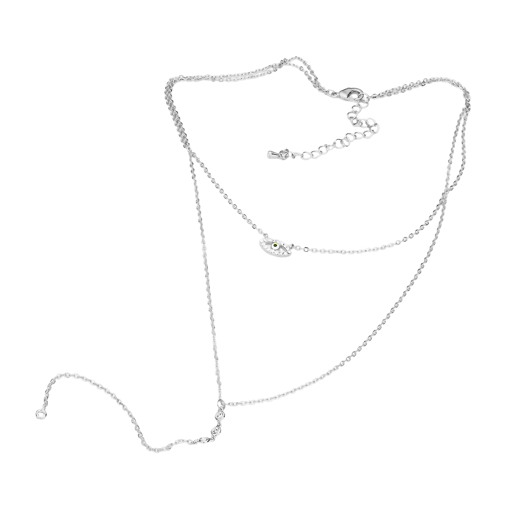 Brass Metal CZ Evil Eye Accented Double Layered Y Necklace