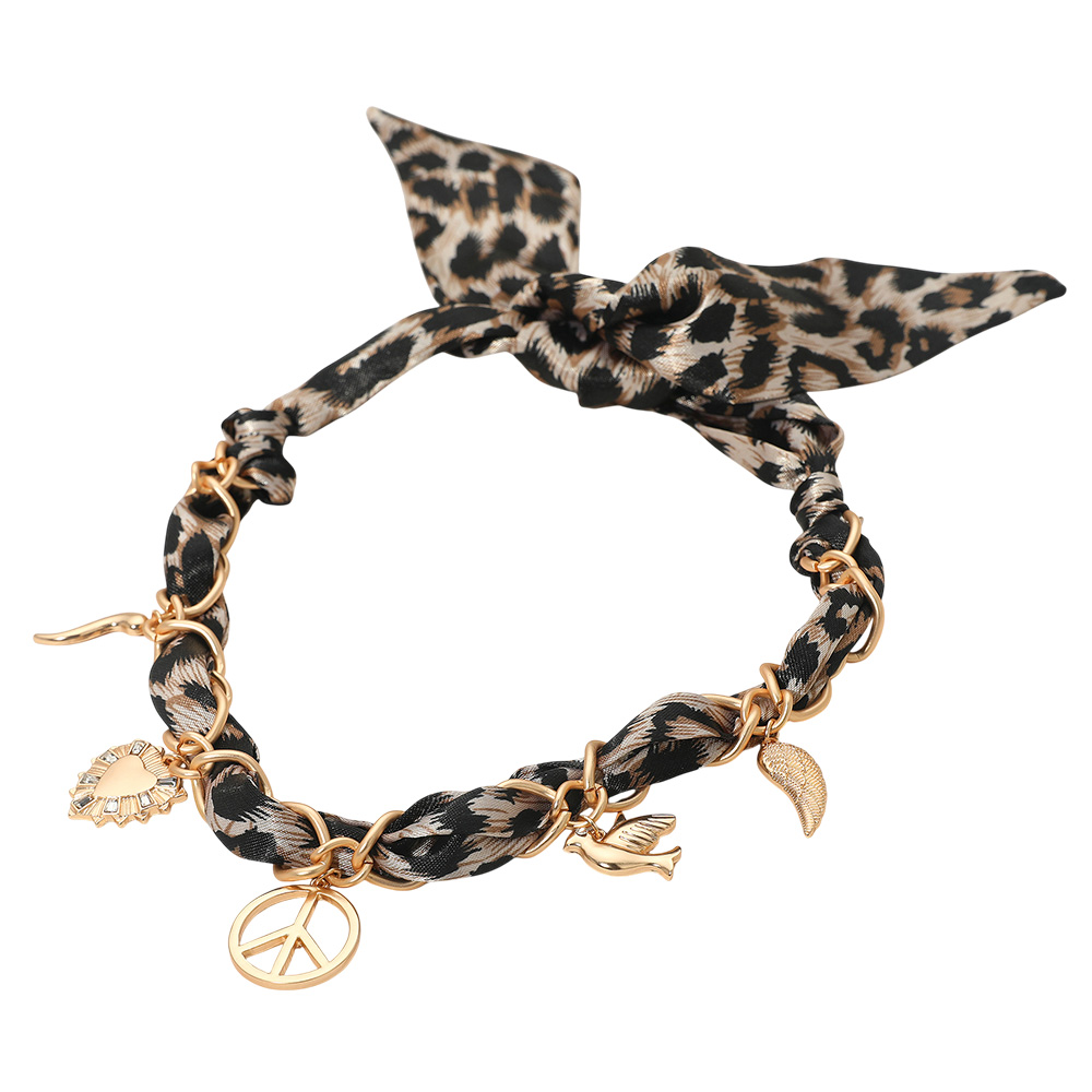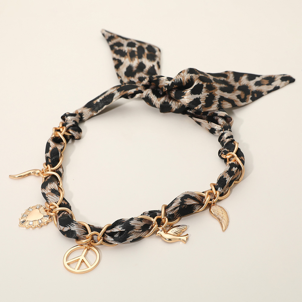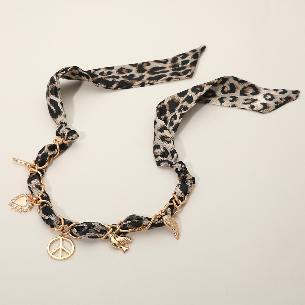 Details • Necklace Size : 35" L • Decor Size : 1.2" L • Adjustable • Express effortless style with this fabric-wrapped chain necklace featuring peace, heart, and bird charms. Its adjustable fit and mix of soft texture with gleaming metallic accents create a balanced blend of modern chic and timeless individuality. • Lead and Nickel Compliant