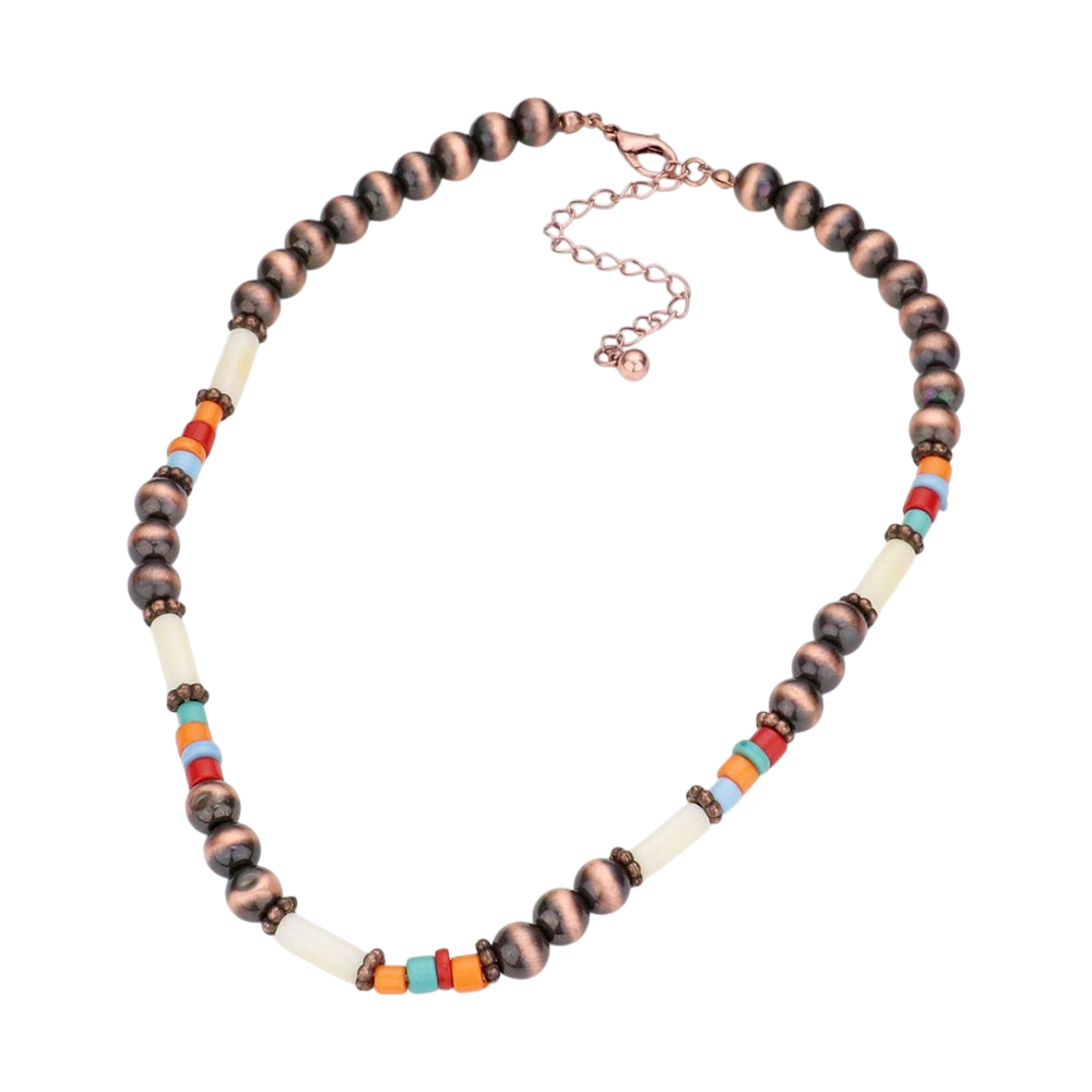 Burnished Metal Ball Beaded Necklace