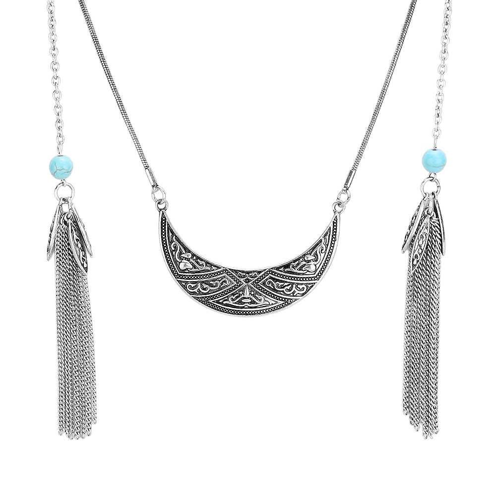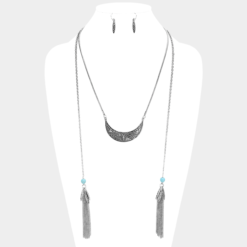 Chain Tassel Patterned Burnished Metal Necklace
