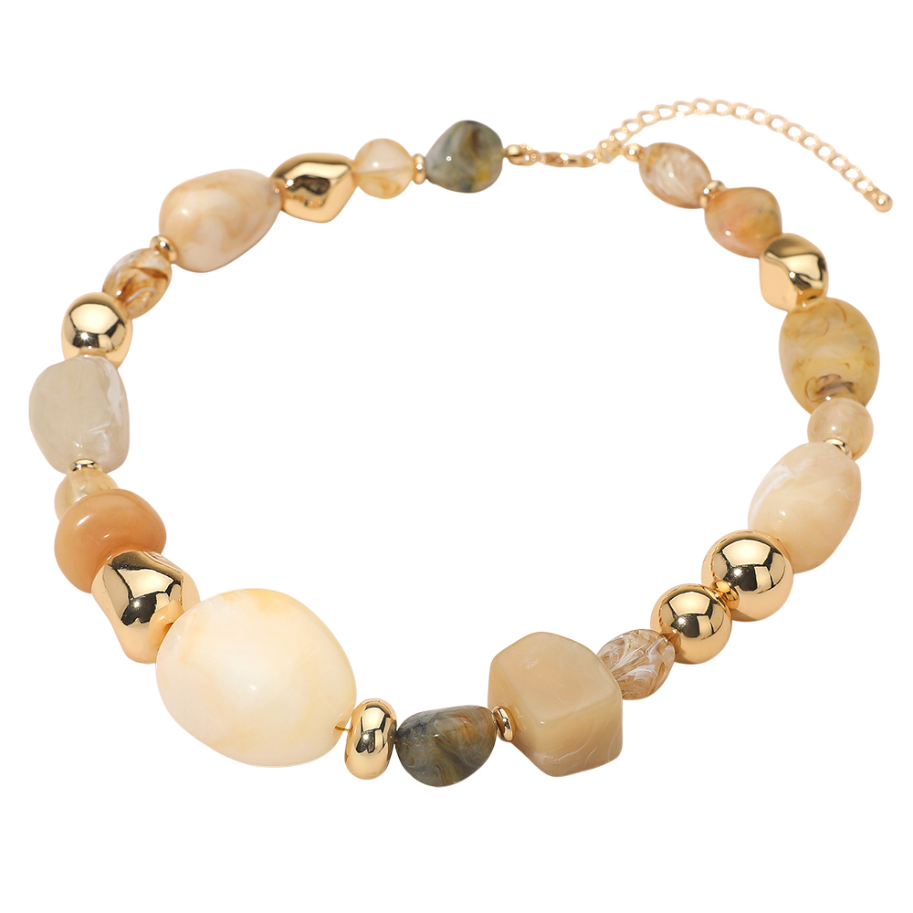• Make a bold statement with this chunky beaded necklace featuring a mix of smooth stones and polished metallic accents. Perfect for elevating casual looks or adding flair to evening outfits, it’s a versatile piece that blends natural beauty with modern style.